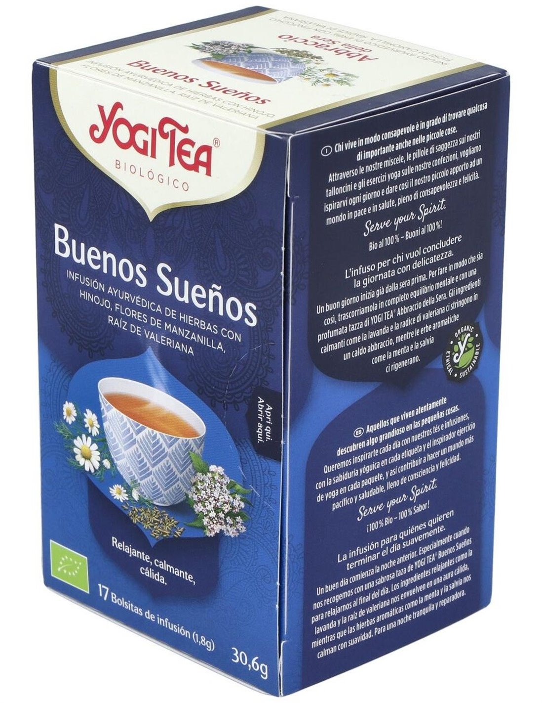 YOGI TEAEl Yogi Tea Buenos Sueños 17 x 1,8 g es una infusión diseñada para personas que buscan relajarse antes de dormir. Ofrece una mezcla de hierbas naturales que favorecen un ambiente tranquilo y propicio para el descanso.