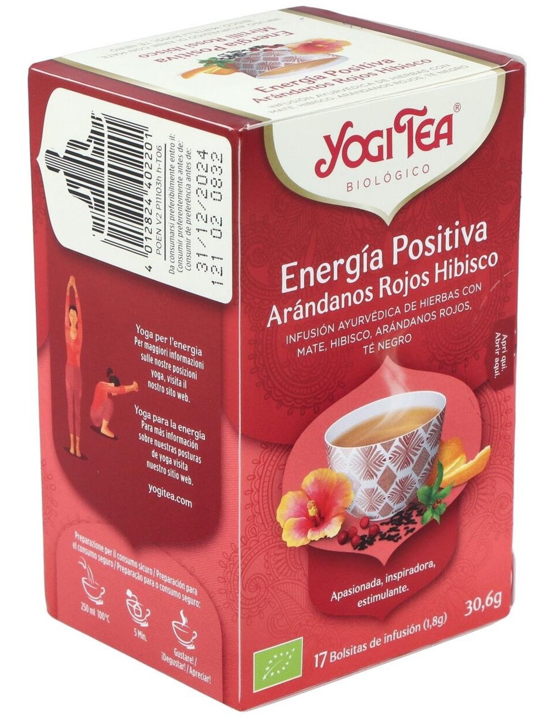 YOGI TEAEl Yogi Tea Energía Positiva Arándanos Hibisco es una infusión para personas que buscan un impulso natural. Combina arándanos e hibisco para ofrecer una experiencia refrescante y revitalizante en cada taza.
