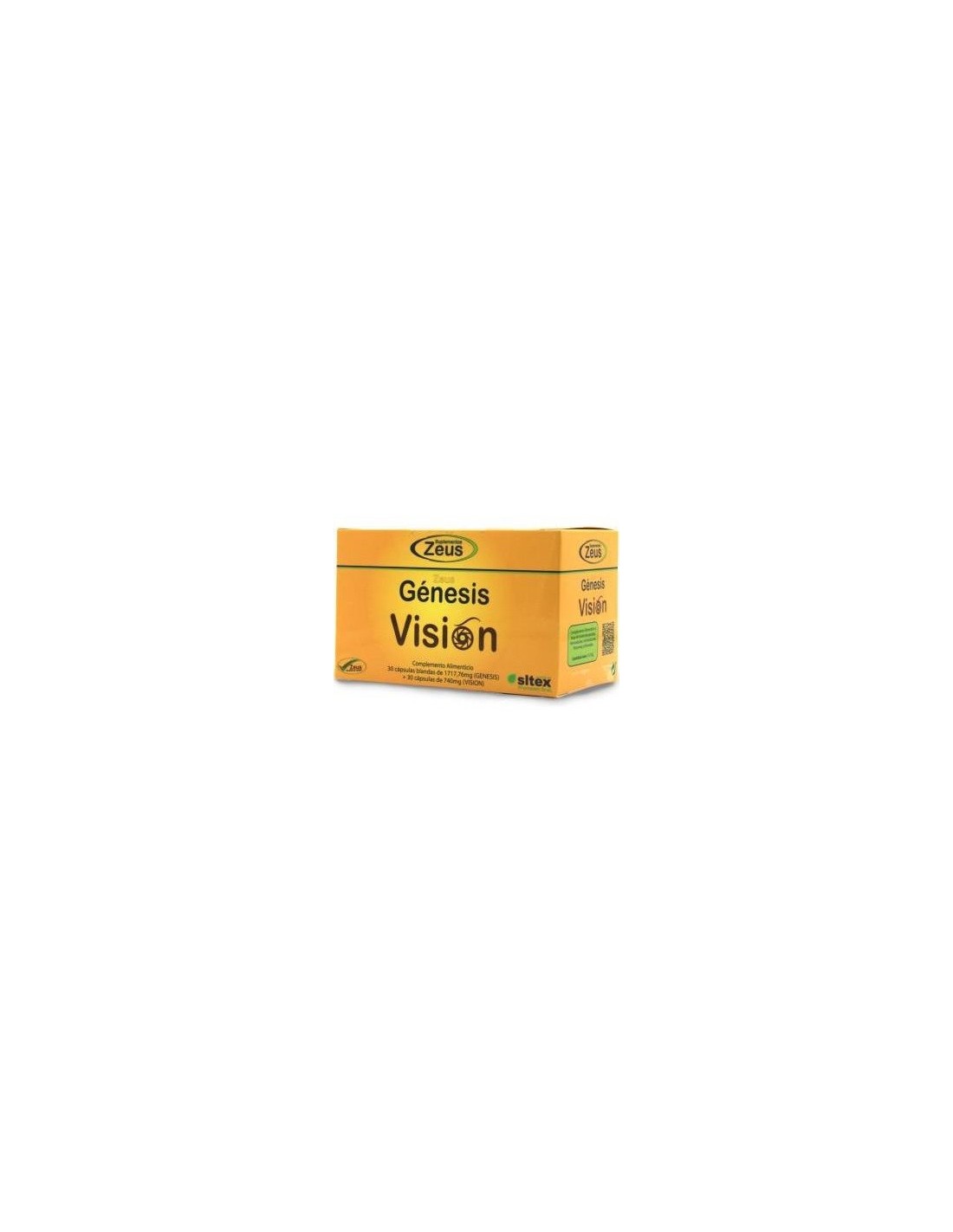 Complemento alimenticio a base de omega 3 que ayuda a mejorar y restaurar la visión. Zeus ofrece un producto que ayuda a mejorar la pérdida de visión causada por el paso del tiempo o, simplemente, por la degeneración del campo ocular. Se divide en dos áreas, 30 cápsulas llamadas Génesis y 30 llamadas Visión, que en conjunto, ayudan a lograr los efectos deseados. Estas cápsulas contienen ingredientes como: omega 3, ácido alfa lipóico y vitaminas reconocidas como sustancias que ayudan a mejorar la visión.