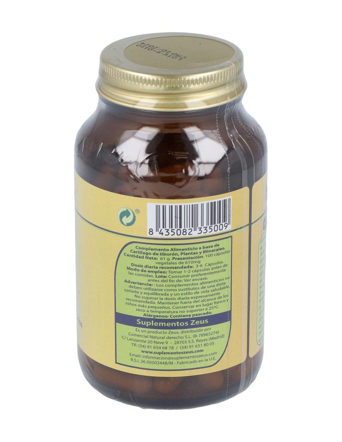 CARTÍLAGO DE TIBURÓN: de alto valor nutritivo, esta compuesto de proteínas, poca grasa, carbohidratos y la macroproteína (I.D.C.). Dichos nutrientes hacen del cartílago un elemento importante para las alteraciones artritico-inflamatorias. Según las palabras del medico estadounidense William Lane, "el tiburón es una perfecta maquina viviente que no contrae cáncer". Según dicho doctor, "cuando todas las criaturas han calcificado su esqueleto, el del tiburón sigue componiéndose exclusivamente de cartílago".