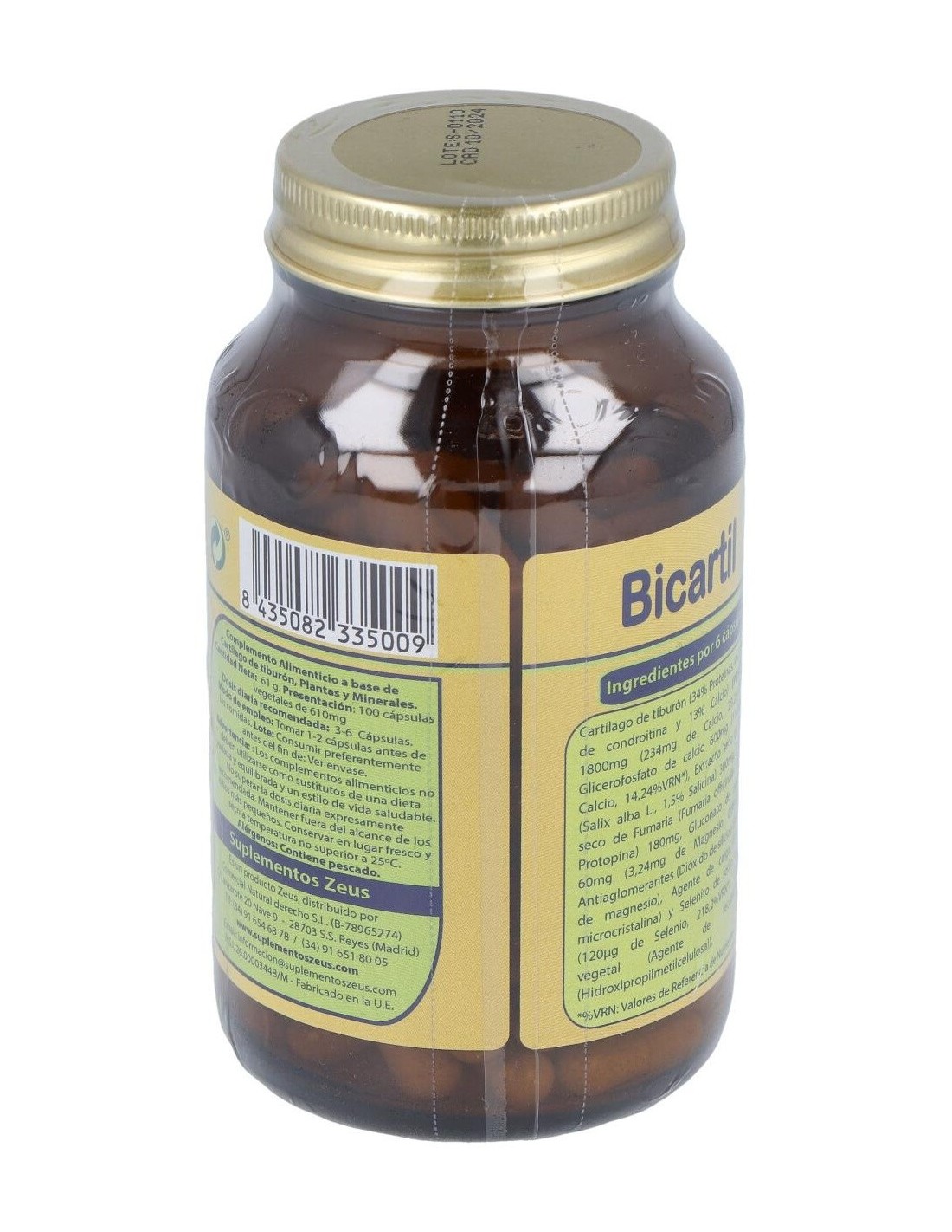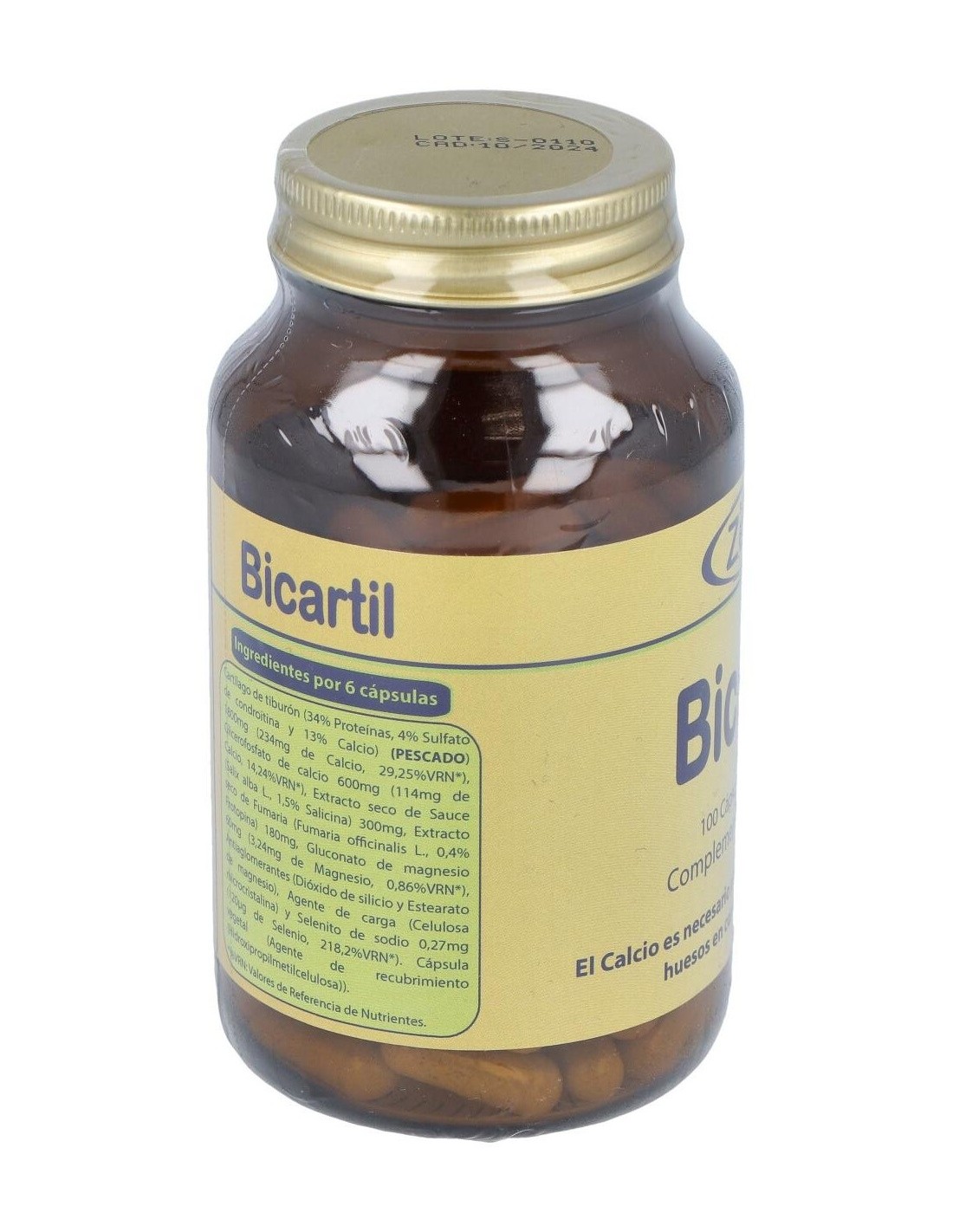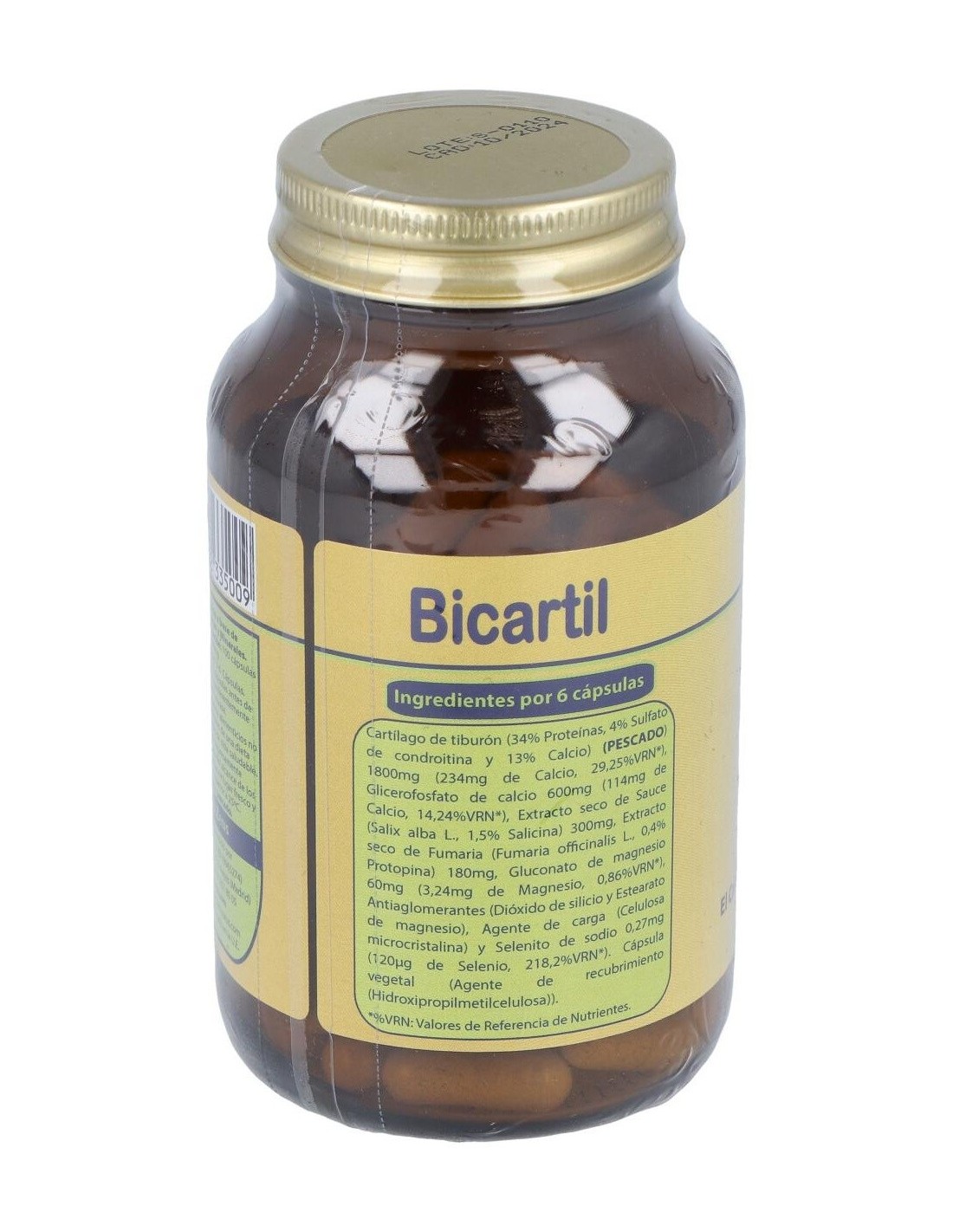 Cartílago de tiburón, sauce, fumaria, levadura de selenio, silicio, magnesio y glicerofosfato cálcico, es la composición que hace que Bicartil sea el complemento ideal para el mantenimiento y funcionamiento óseo.