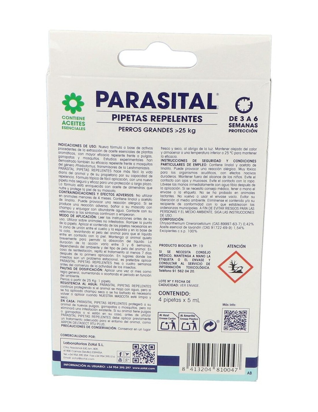 Parasital Pipeta Antiparasitario Perros Grandes de Zotal Vet