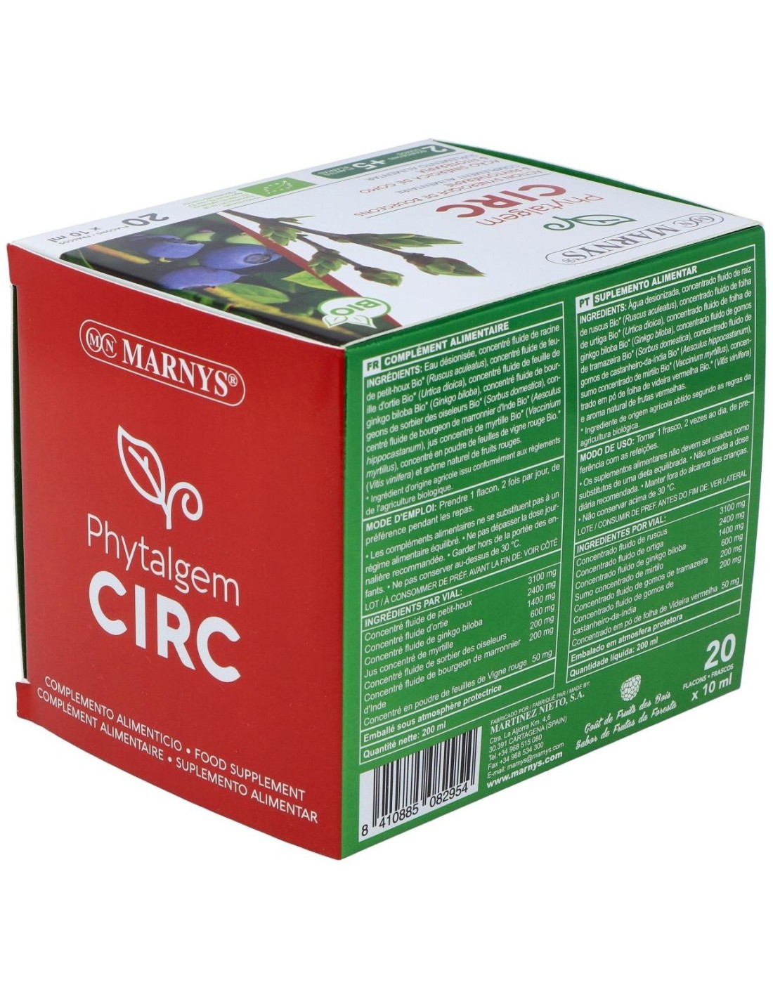 Por vial: Colágeno Hidrolizado 500 mg, Glucosamina 500 mg, Condroitina 500 mg, Escaramujo 500 mg, ortiga 100 mg, Omega 3 100mg, calcio 50 mg, ácido hialurónico 25 mg, Vitamina E 9 mg, Vitamina K2 56,2 µg, Vitamina D3 5 µg.