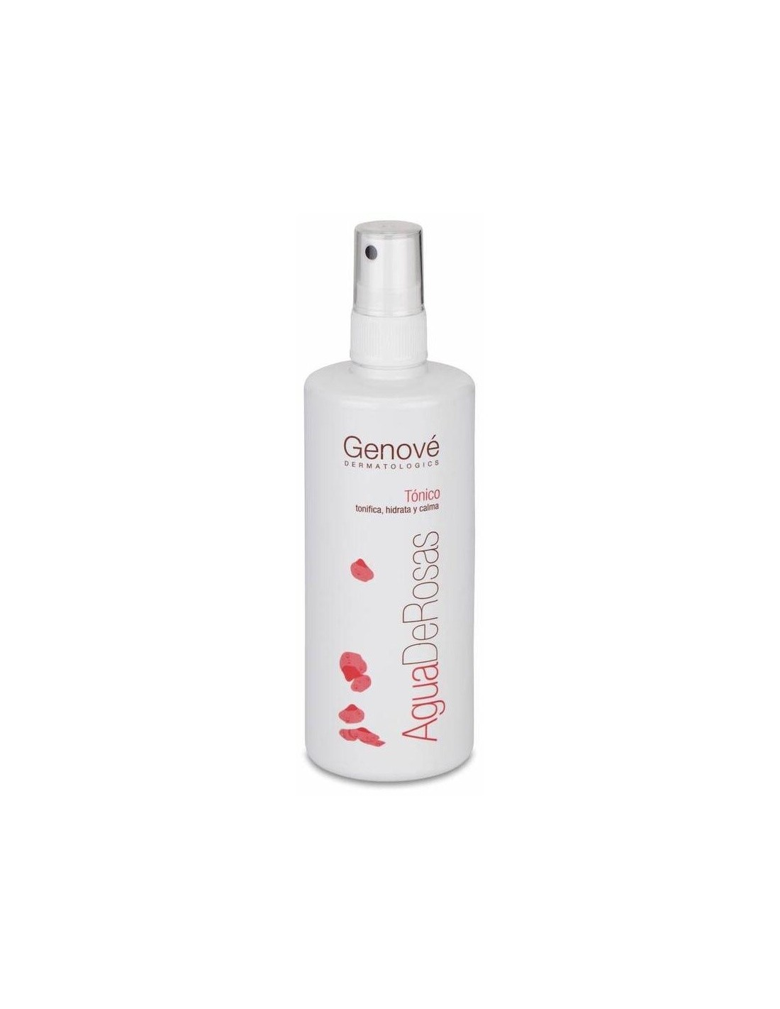 AGUA DE ROSAS GENOVETónico Agua de Rosas revitaliza, tonifica y limpia la epidermis calmando e hidratando la piel. Producto de alta pureza especialmente indicado en los cuidados de la piel. Su aplicación como producto natural es indispensable para revitalizar, tonificar y limpiar la epidermis, conservando el frescor y la belleza de la piel sometida a diario a los agentes externos climatológicos (viento, frío, exposición solar, etc.), agentes contaminantes y del propio maquillaje.
