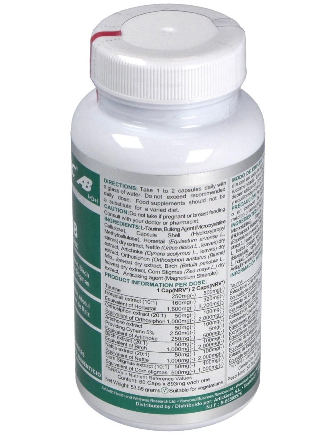 TAURINA, AGENTE DE RECUBRIMIENTO (HIDROXIPROPIL METILCELULOSA), EXTRACTO DE COLA DE CABALLO (EQUISETUM ARVENSE), EXTRACTO DE ORTOSIFÓN (ORTHOSIPHON STAMINEUS), EXTRACTO DE ALCACHOFA (CYNARA SCOLYMUS), EXTRACTO DE ABEDUL (BETULA PENDULA), ESTIGMAS DE MAÍZ (ZEA MAYS), EXTRACTO DE ORTIGA (URTICA DIOICA).