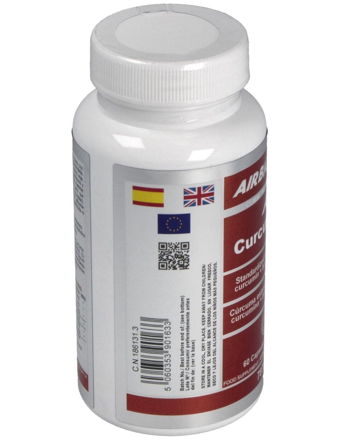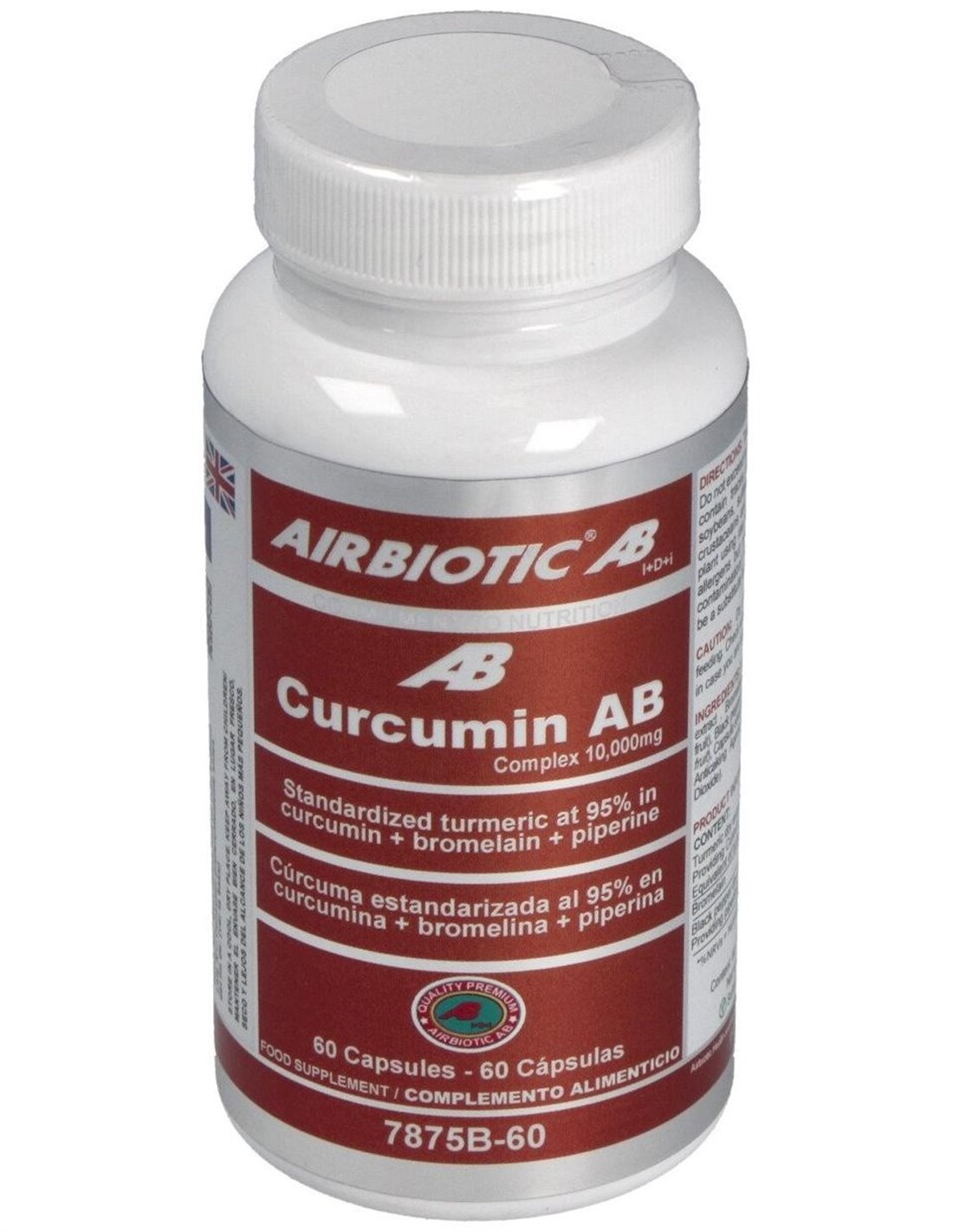 Airbiotic Cúrcuma AB Complex 10.000 Mg 60 Cápsulas es un complemento que contiene 500 mg de extracto de cúrcuma estandarizado al 95% de curcumina, lo que garantiza 475 mg de esta sustancia por tableta; esta cantidad equivale a la que aportaría 10.000 mg de polvo de raíz de cúrcuma (unas 2 cucharaditas colmadas).