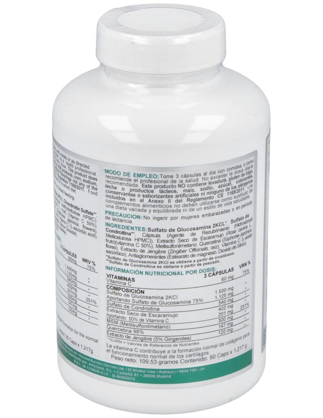 Sulfato de Glucosamina.....................1500 mg