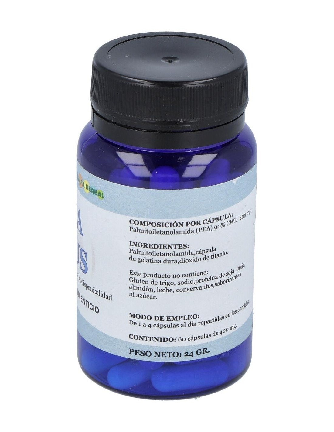 La palmitoiletanolamida (PEA) es una molécula que protege de la neuroinflamación y el dolor. En situaciones crónicas de dolor, las células no producen suficiente PEA y es entonces cuando se necesita una suplementación. Es un potente y natural aliviador del dolor tanto crónico como neuropático y además es anti-inflamatorio. Ideal cuando se busca una alternativa natural al paracetamol y otros AINES.