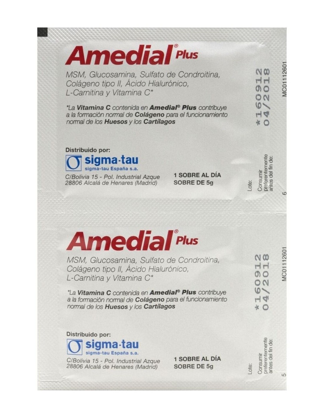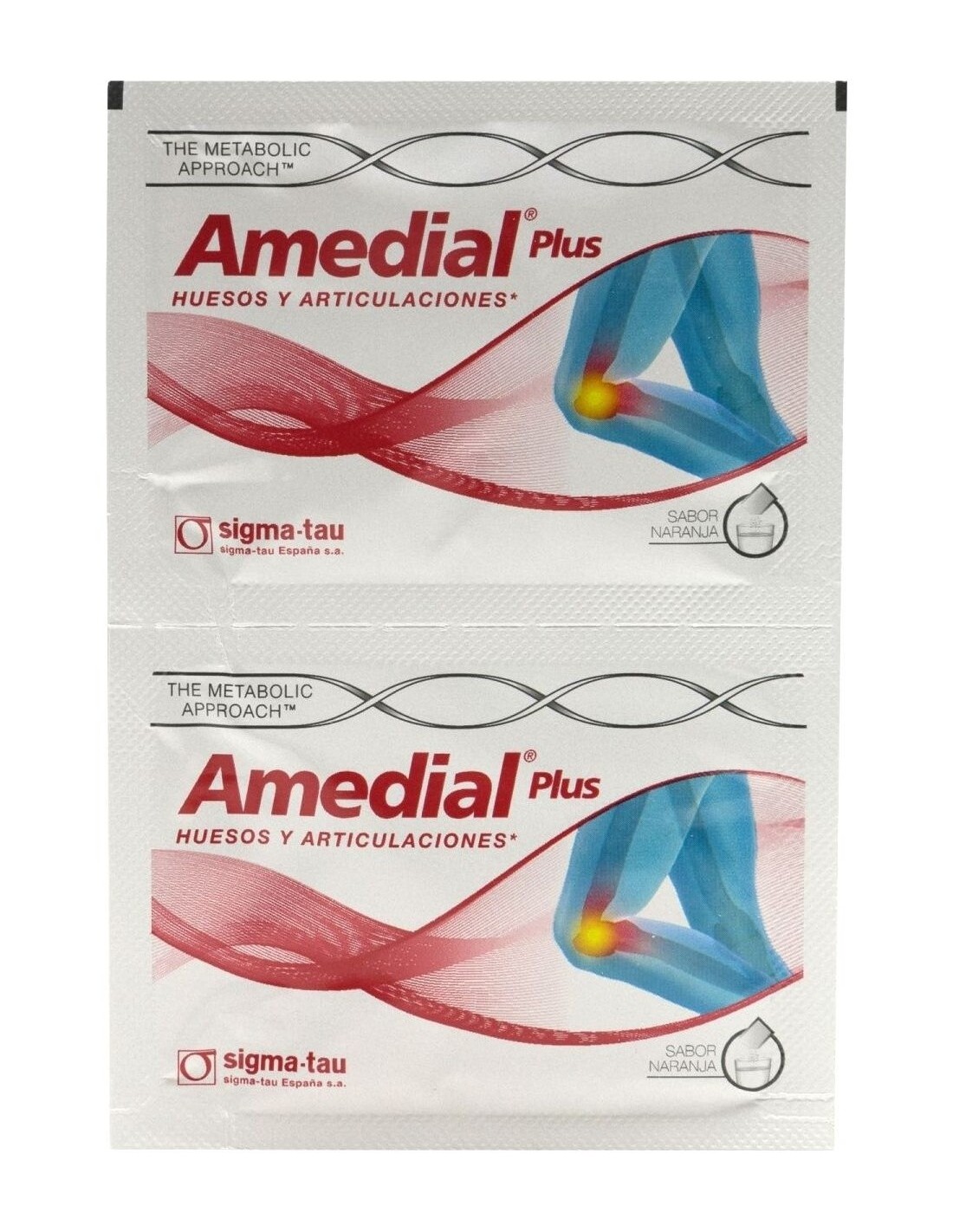 ALFASIGMALa vitamina C contenida en Amedial Plus contribuye a la formación normal de colágeno para el funcionamiento normal de los huesos y cartílagos. Sabor naranja.
