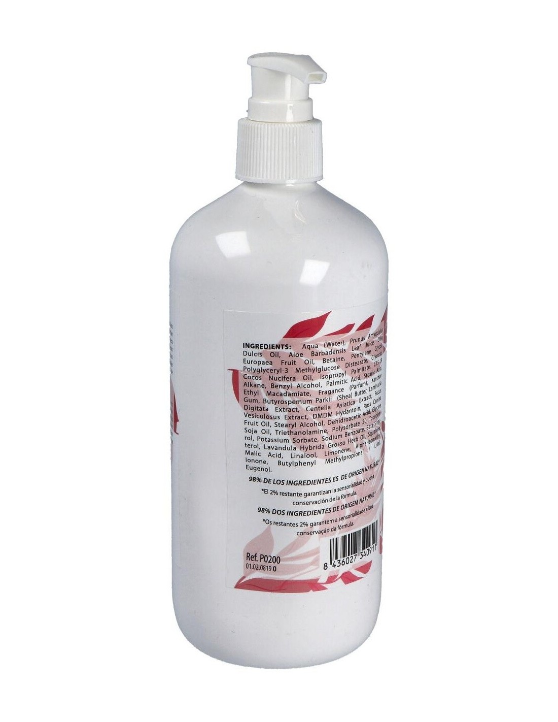 Con 18 extractos vegetales, extracto de Algas Fucus y Laminaria, Aceites de Ricino, Almendras Dulces, Aguacate, Coco, Jojoba, Macadamia y Onagra, Derivado de Aceite de Oliva, Manteca de Karité, Aloe Vera, Vitamina E, Panthenol, Esencia de Lavanda, Extracto de Tepezcohuite y Manzanilla, Centella Asiática y Vitamina F.