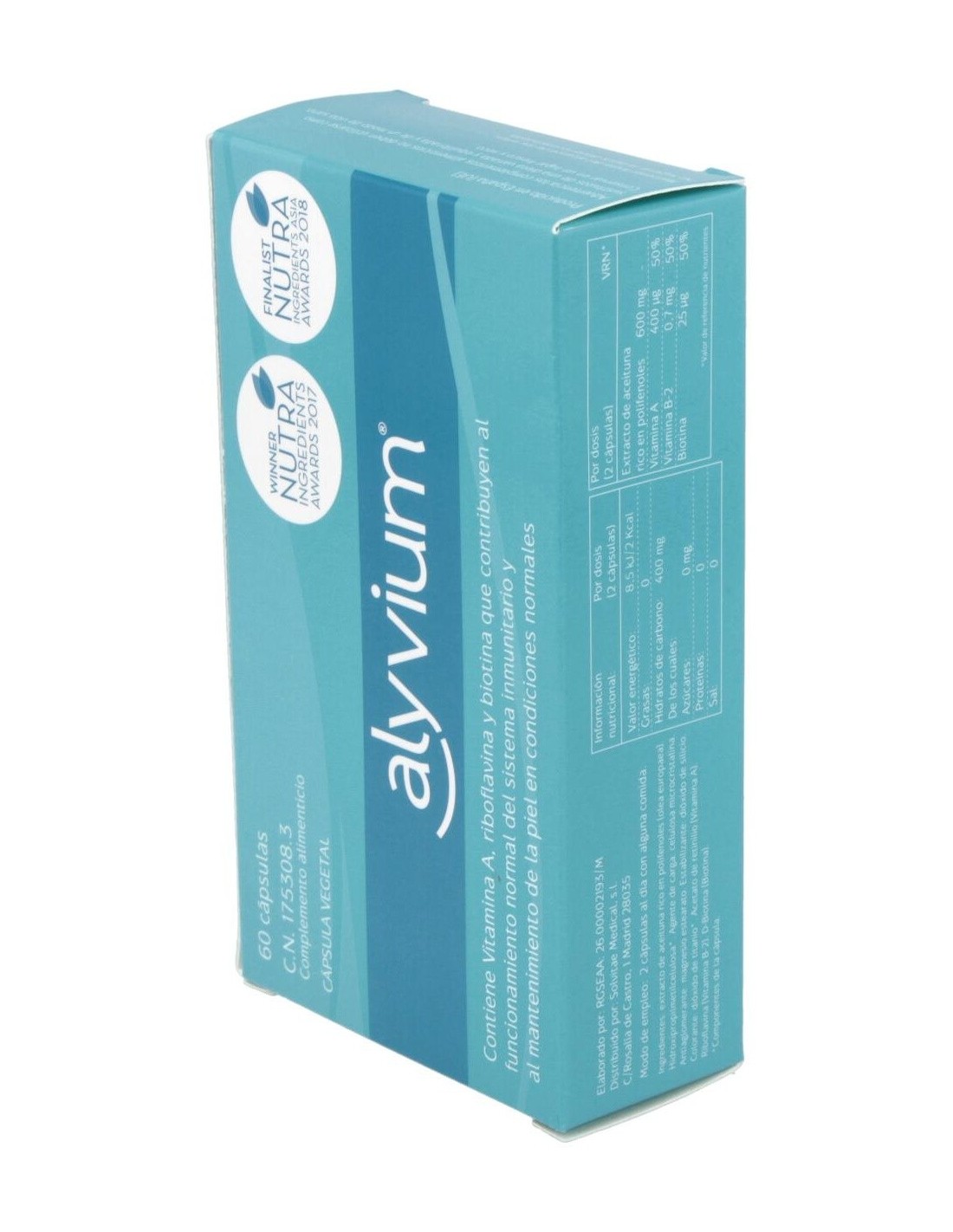 Alyvium es un complemento alimenticio que ayuda a reforzar el sistema inmunitario y mantiene la piel en condiciones saludables, sobre todo cuando existen problemas de acné, eczemas, quemaduras o psoriasis.