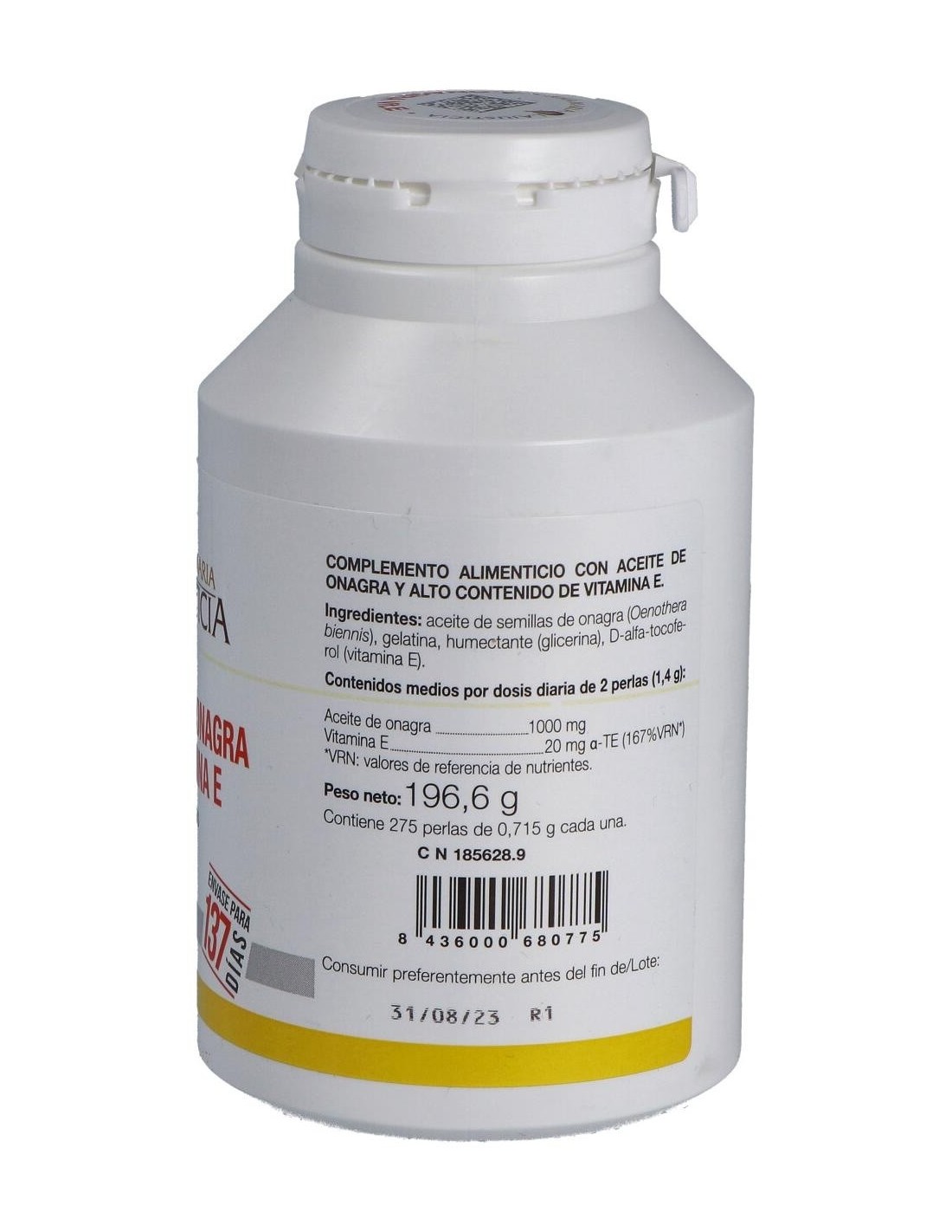 Ana Maria Lajusticia Aceite De Onagra + Vitamina E 275 Perlas es un complemento alimenticio rico en vitamina E y ácidos grasos poliinsaturados, con aceite de Onagra. La vitamina E colabora con la protección de las células frente al daño oxidativo.