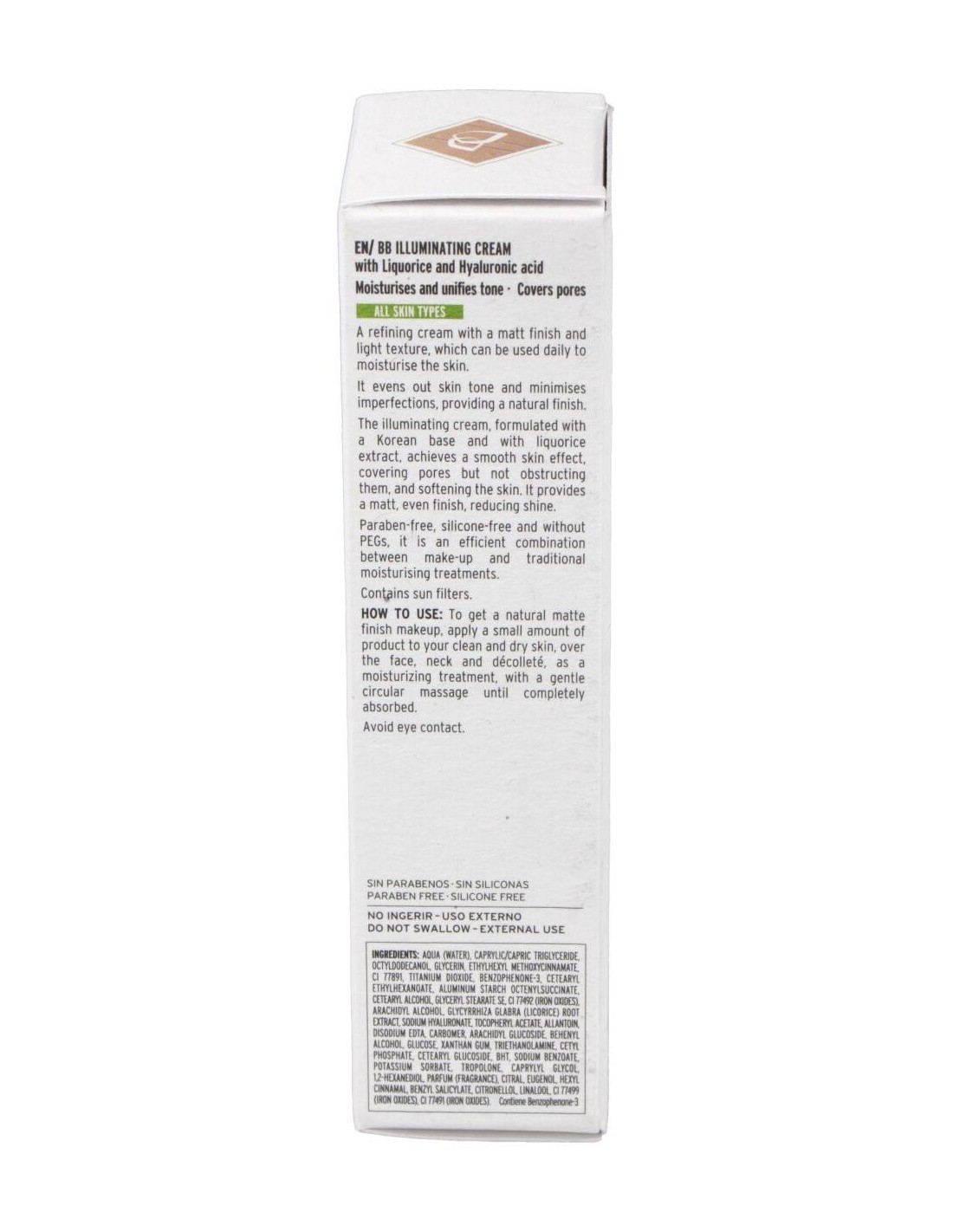 Crema perfeccionadora matificante de textura ligera para uso diario que hidrata la piel. Unifica el tono y matiza las imperfecciones, proporcionando un acabado natural. La crema iluminadora, formulada con base koreana y enriquecida con extracto de regaliz, consigue un efecto piel lisa cubriendo el poro sin obstruirlo y suavizando la piel. Proporciona un acabado mate y uniforme que reduce los brillos.