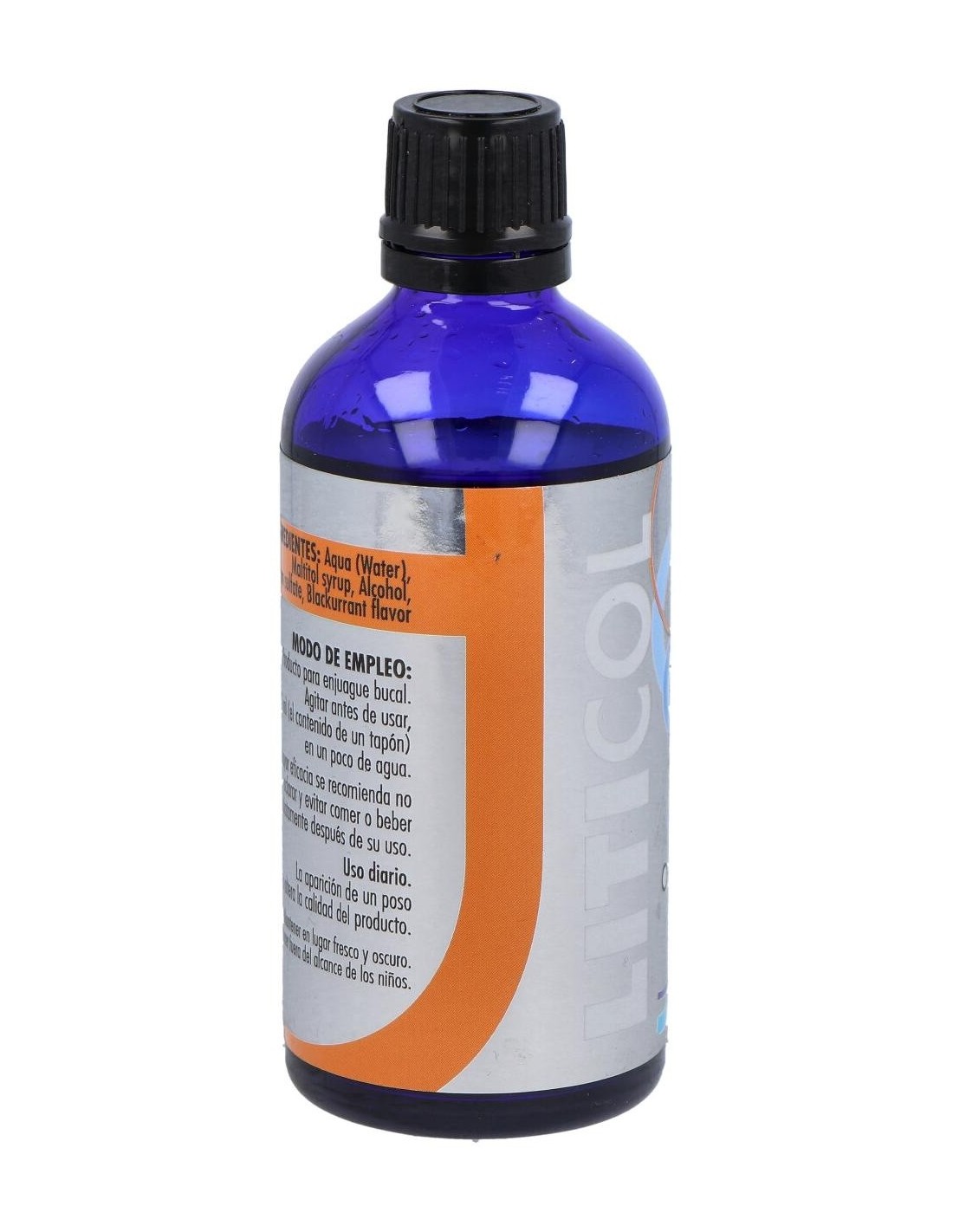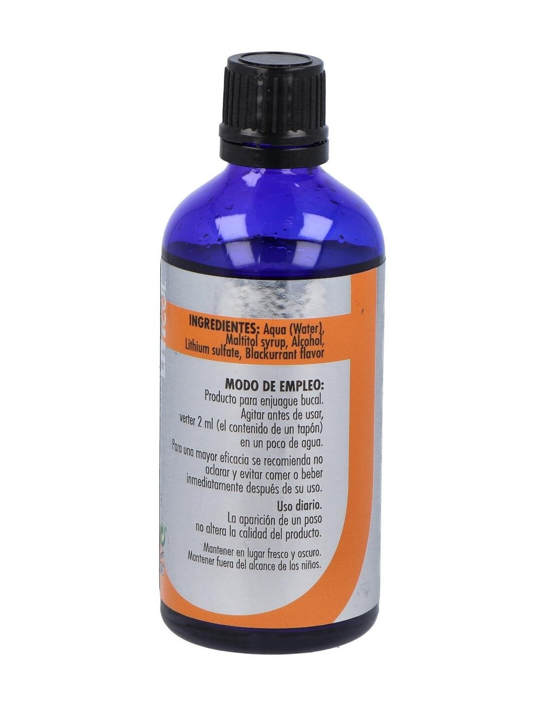 Agua, jarabe de maltitol, alcohol, sulfato de litio, aroma de grosella.