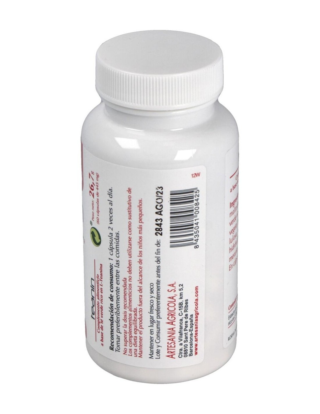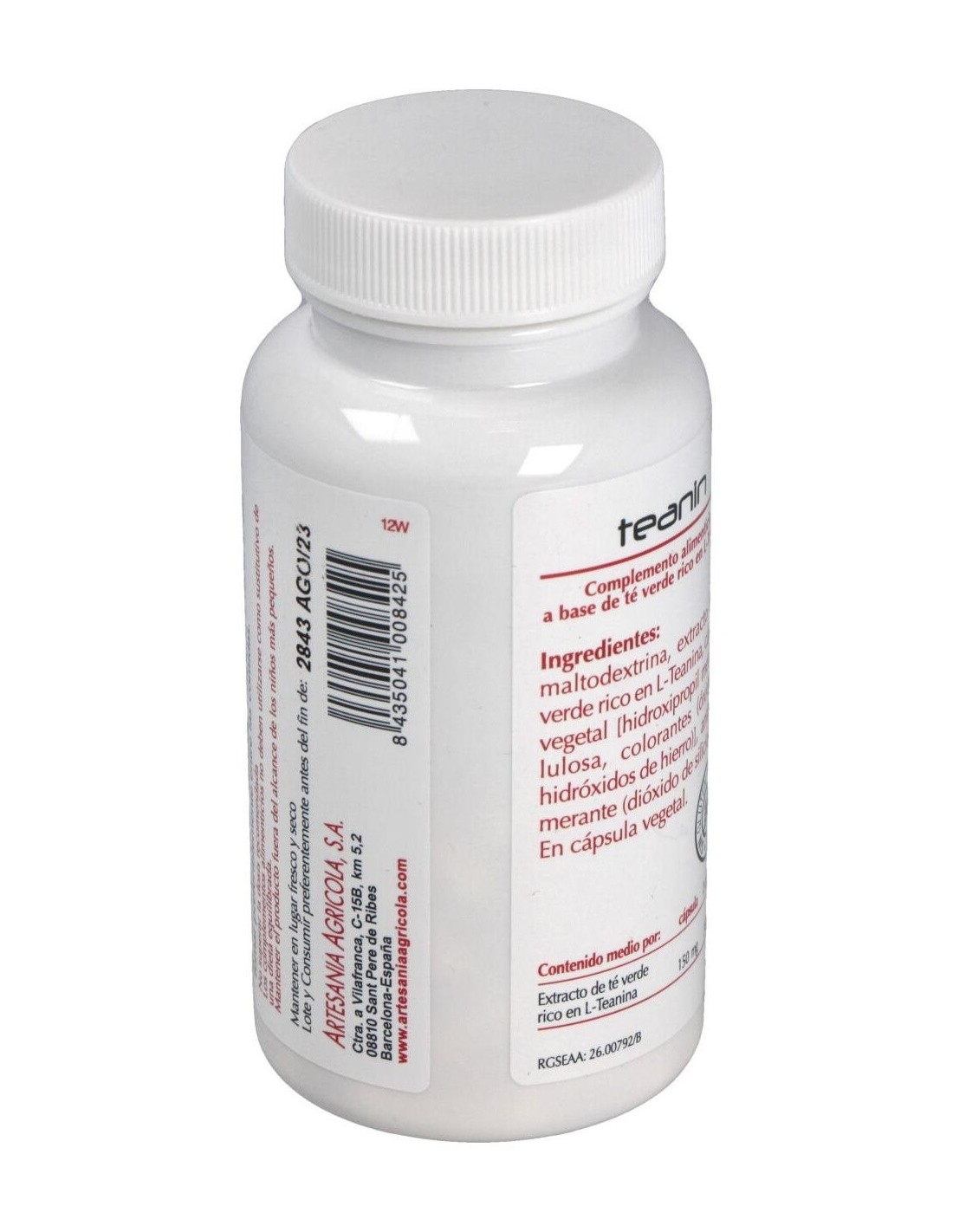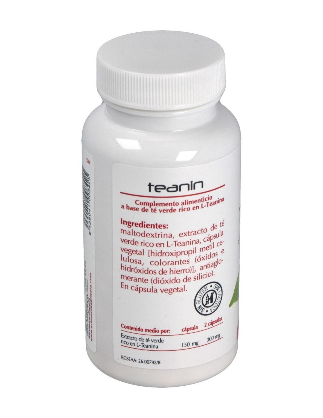 Maltodextrina, extracto de té verde rico en l-teanina, cápsula vegetal [(hidroxipropil metil celulosa), colorantes (óxidos e hidróxidos de hierro)], antiaglomerante (dióxido de silicio).