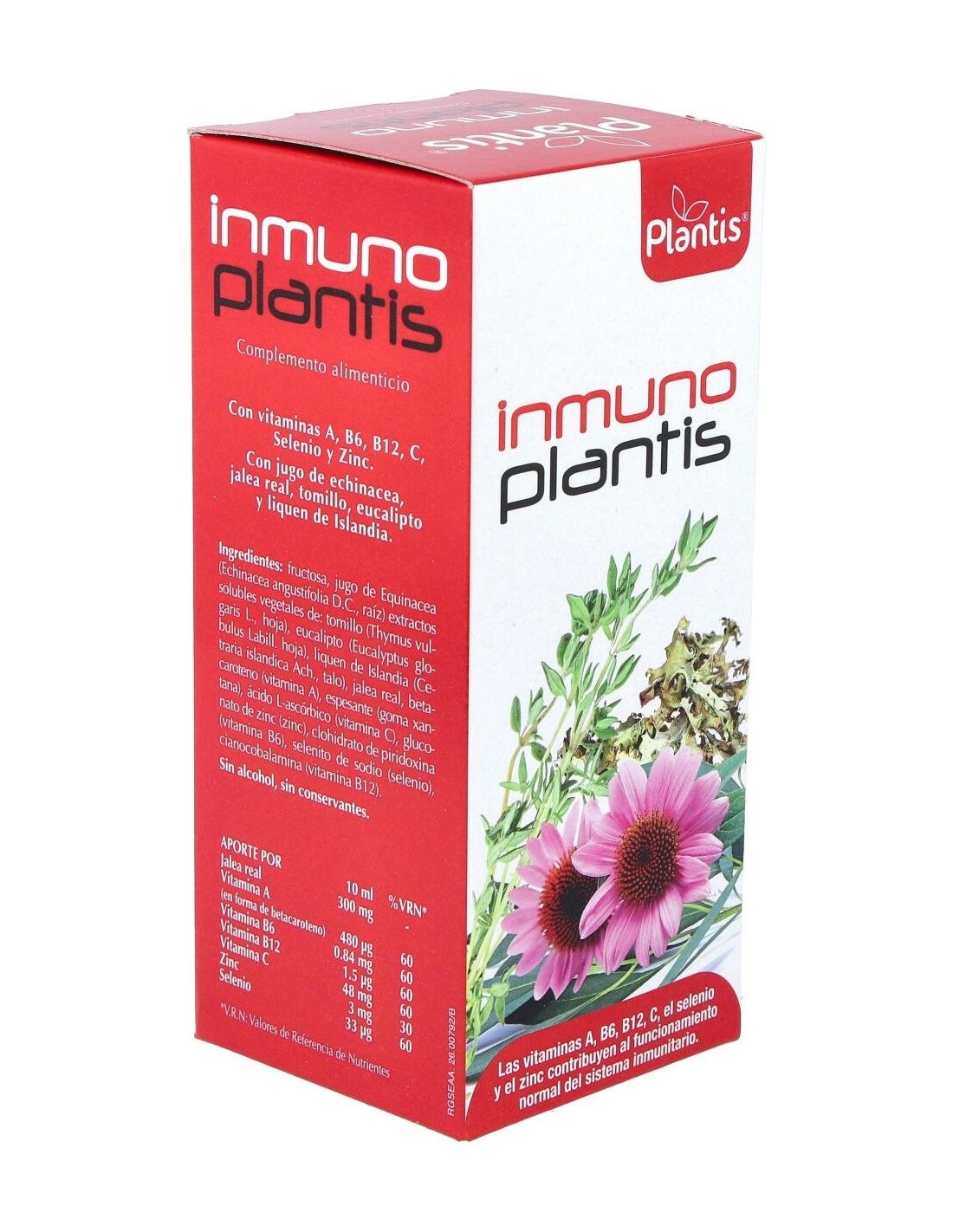 Complemento alimenticio en jarabe formulado a base de jugo de equinácea, jalea real, tomillo y vitaminas. Favorece el funcionamiento normal del sistema inmune. La sinergia de sus ingredientes tiene efecto beneficioso en el mantenimiento de las defensas naturales del organismo. Indicado para adultos.