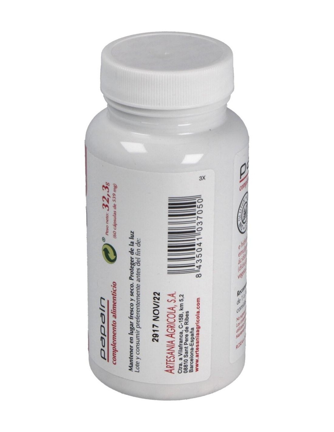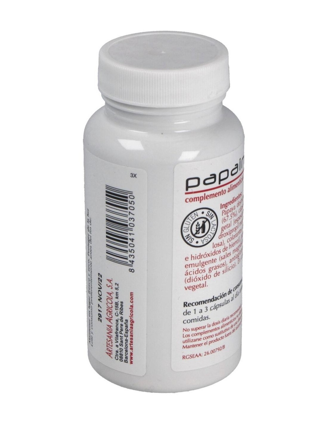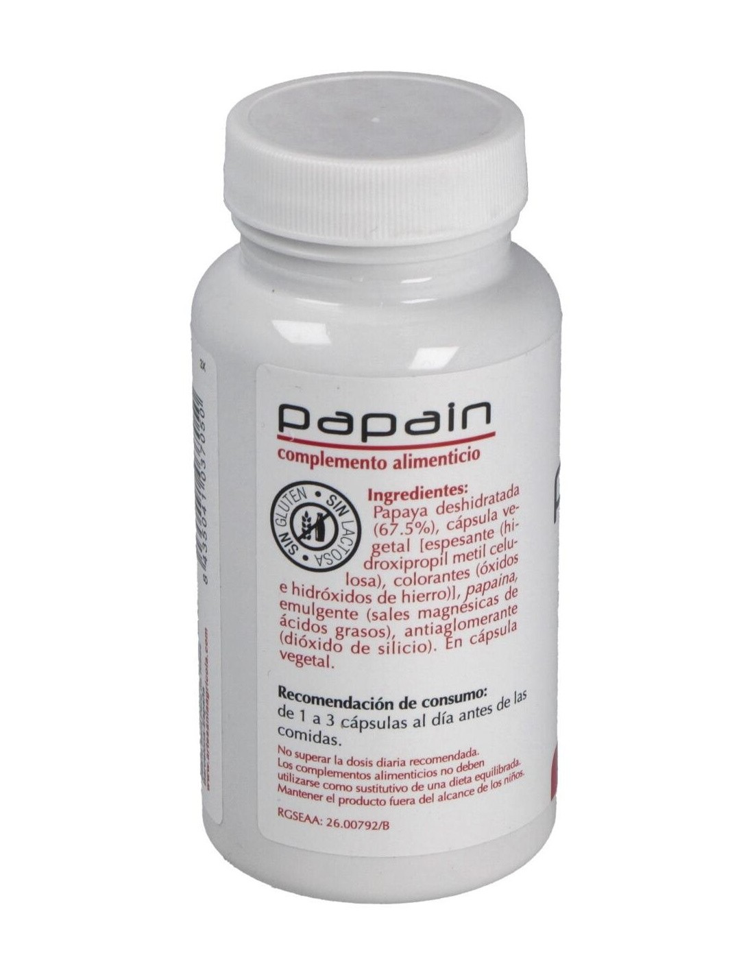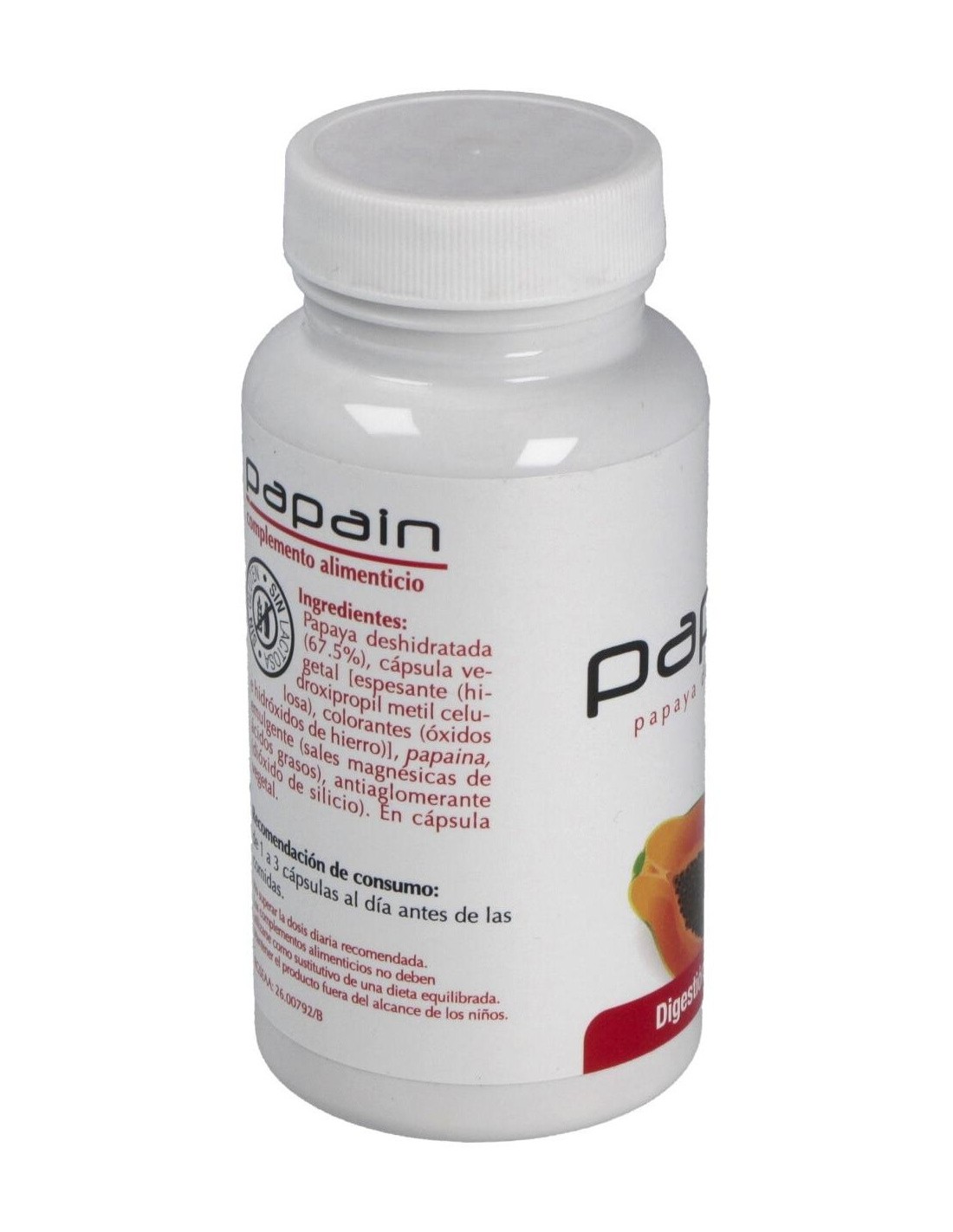 Complemento alimenticio en forma de cápsulas vegetales, elaborado a base de un 94% de papaya deshidratada, que facilita la digestión de las proteínas. Ideal para su uso en dietas deportivas, ya que el principio activo de la papaya, la papaína, actúa descomponiendo las proteínas en aminoácidos, y haciendo que el organismo las aproveche al máximo.