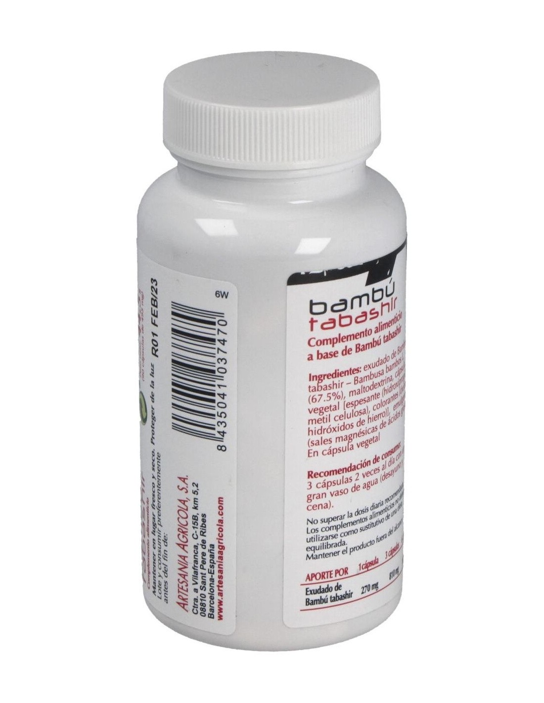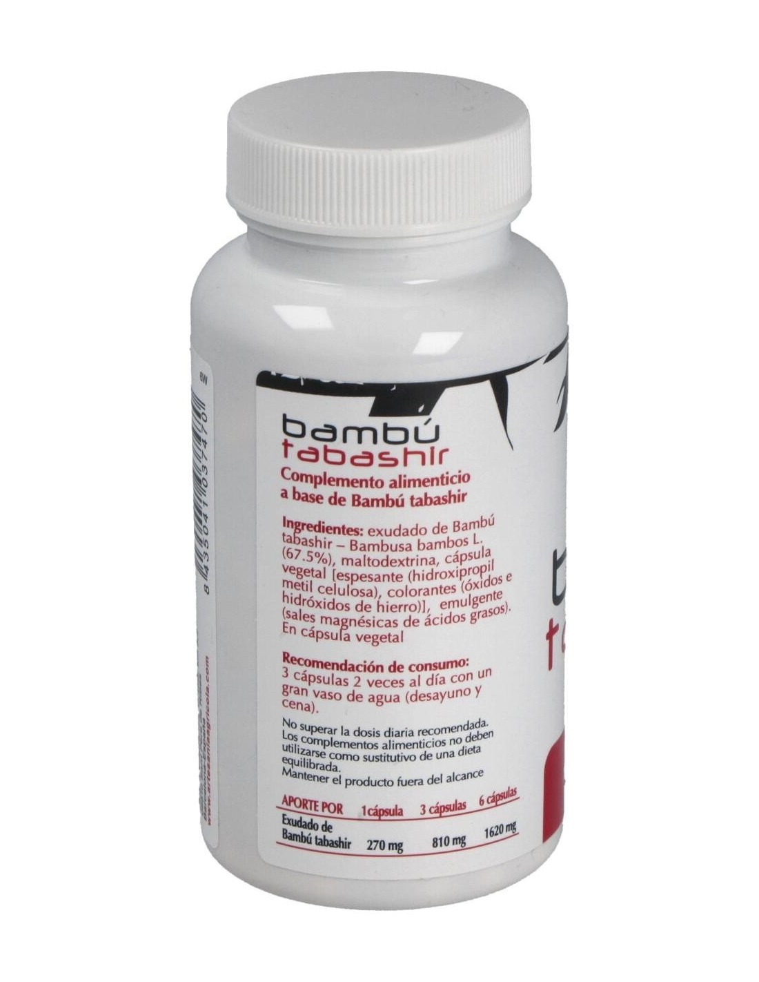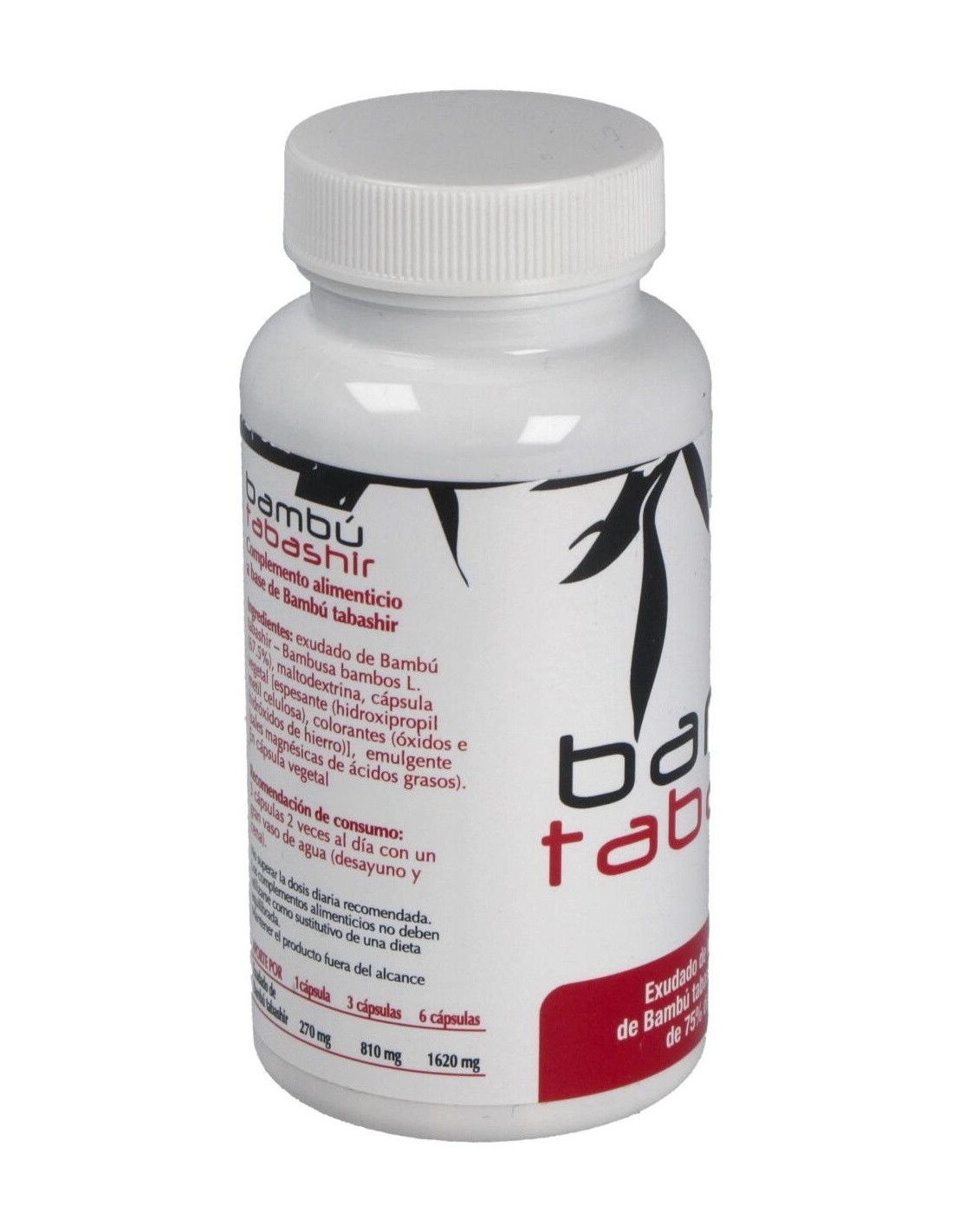 Bambú tabashir (270 mg del exudado de los nudos del tallo con un contenido de 75% de sílice natural), maltodextrina, emulgente (sales magnésicas de ácidos grasos), espesante (hidroxipropilmetilcelulosa), colorantes (óxidos e hidróxidos de hierro). Cápsula vegetal.