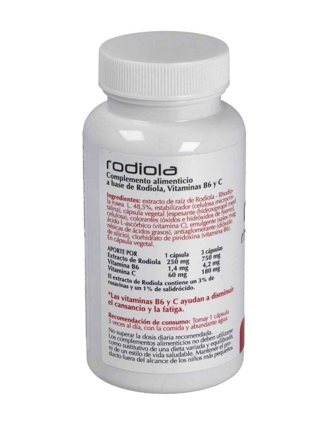 Complemento alimenticio en forma de cápsula, elaborado a base de extracto seco de raíz de rhodiola, que ayuda a disminuir los síntomas del estrés, aumenta la resistencia en actividades físicas y mentales de alta intensidad, y aporta un gran efecto antioxidante para el organismo, entre otros beneficios.