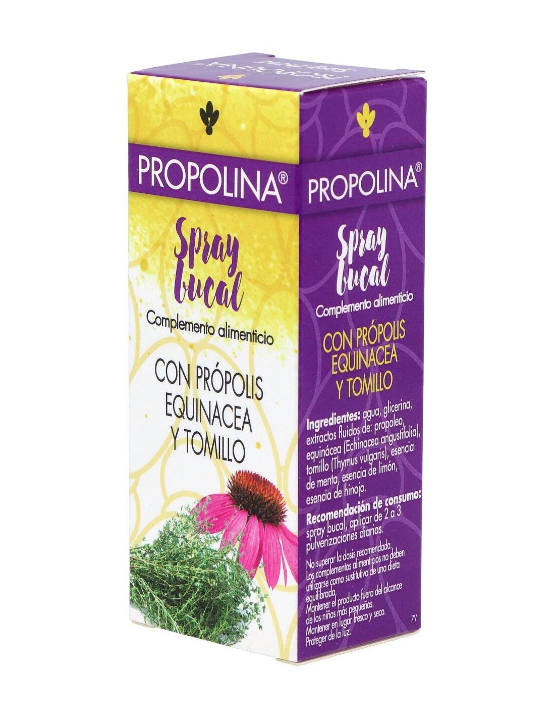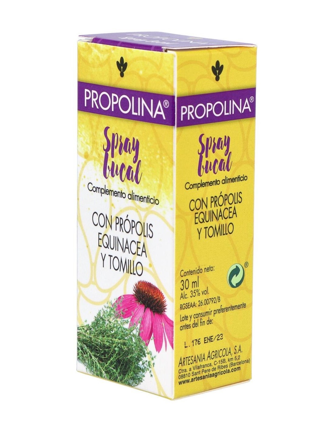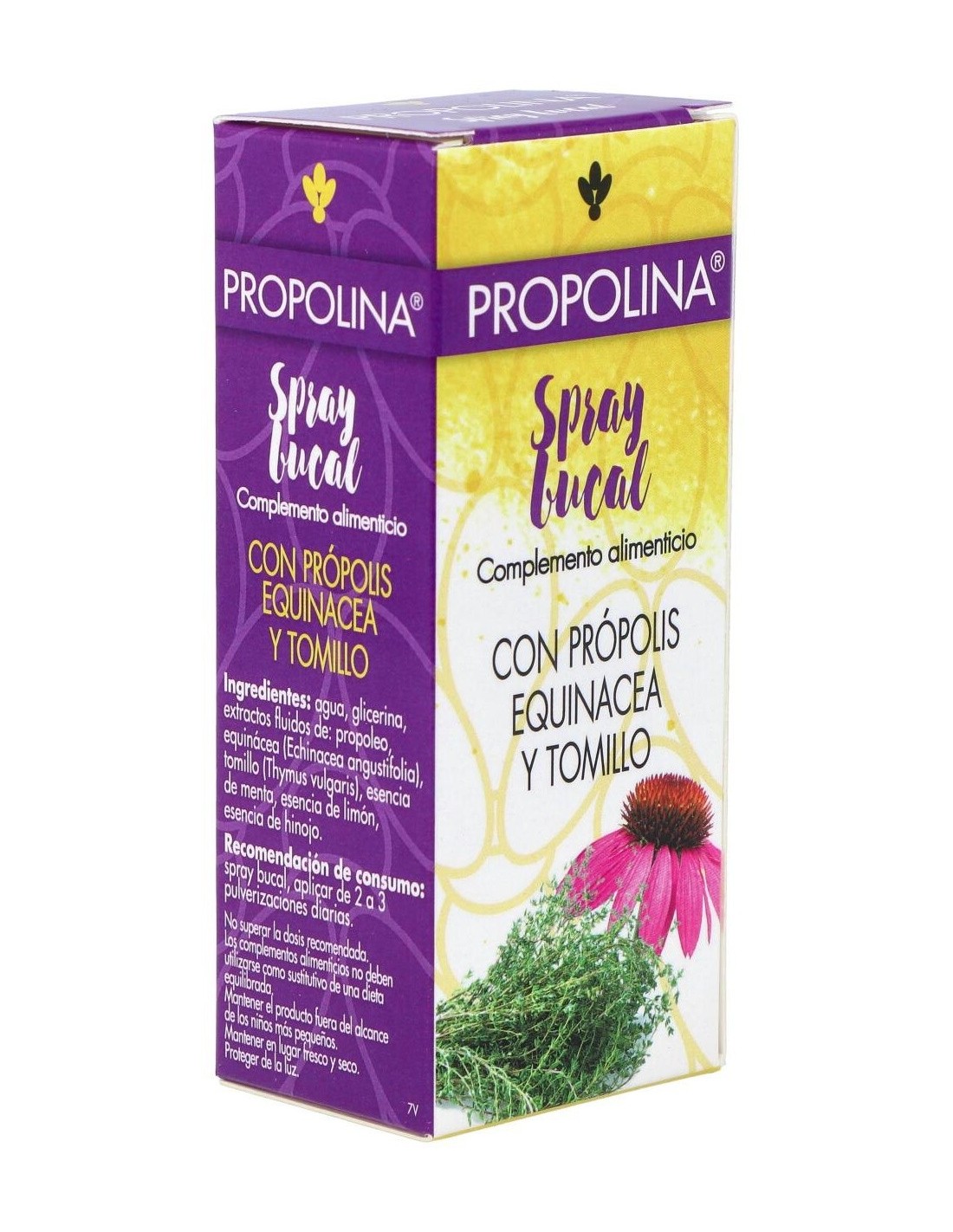 Complemento alimenticio presentado en formato spray que ayuda a aliviar el dolor y escozor en caso de dificultad al tragar la saliva. Está compuesto con propóleo y extractos vegetales. Cuida la garganta y las vías respiratorias. Contribuye en tratar de mejorar las defensas y ayudar a conseguir una buena salud. No se han empleado productos químicos ni artificiales.
