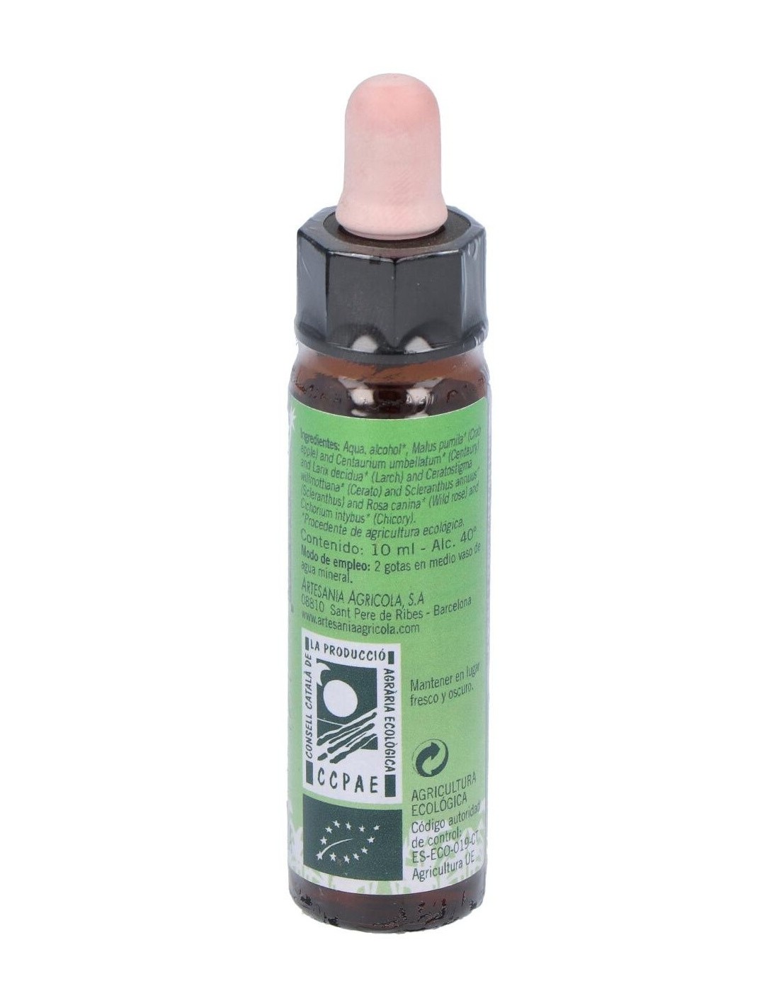 Manzano Silvestre (Crab Apple), Centaurea (Centaury), Alerce (Larch), Ceratostigma (Cerato), Scleranthus (Scleranthus), Rosa silvestre (Wild Rose), Achicoria (Chicory).