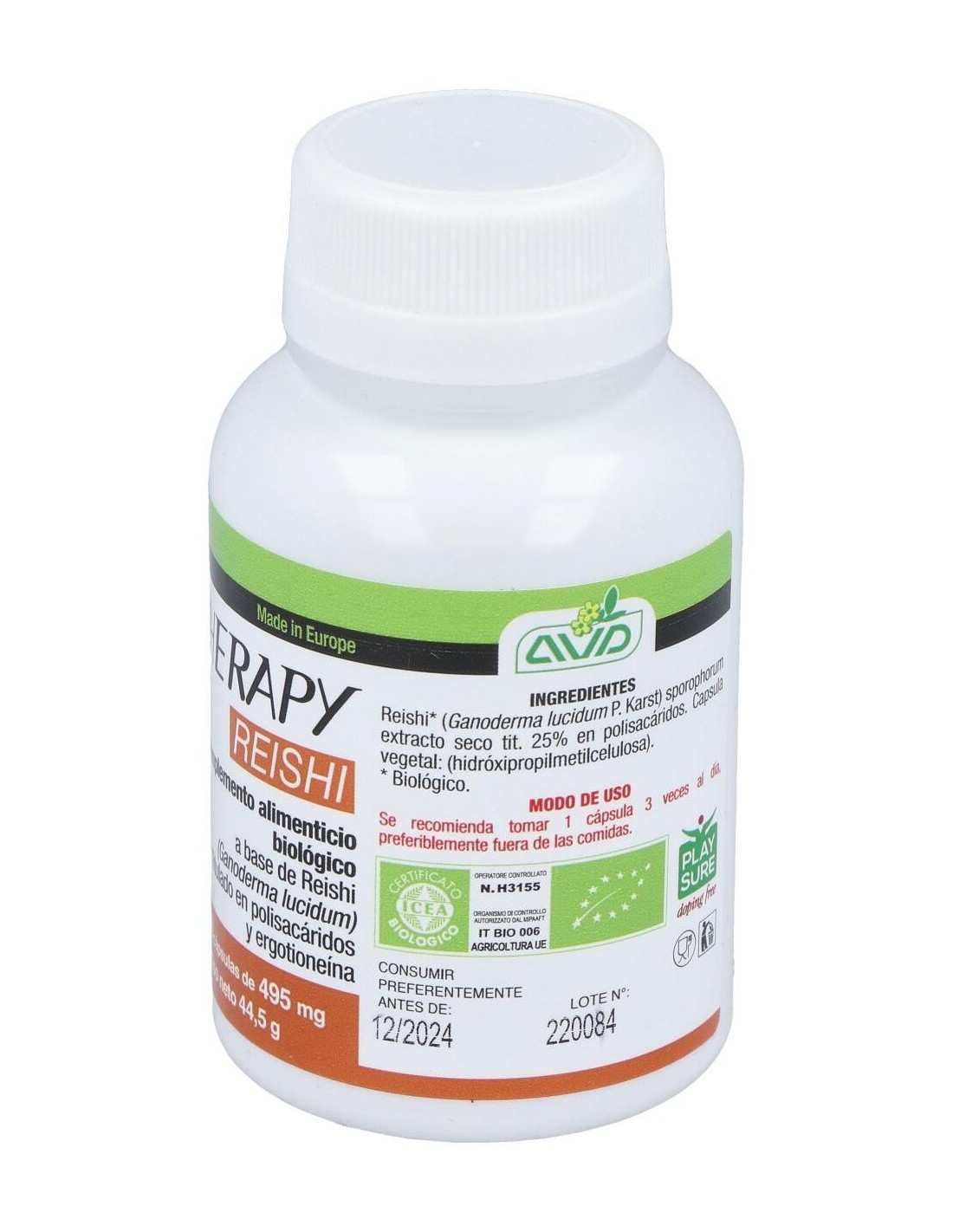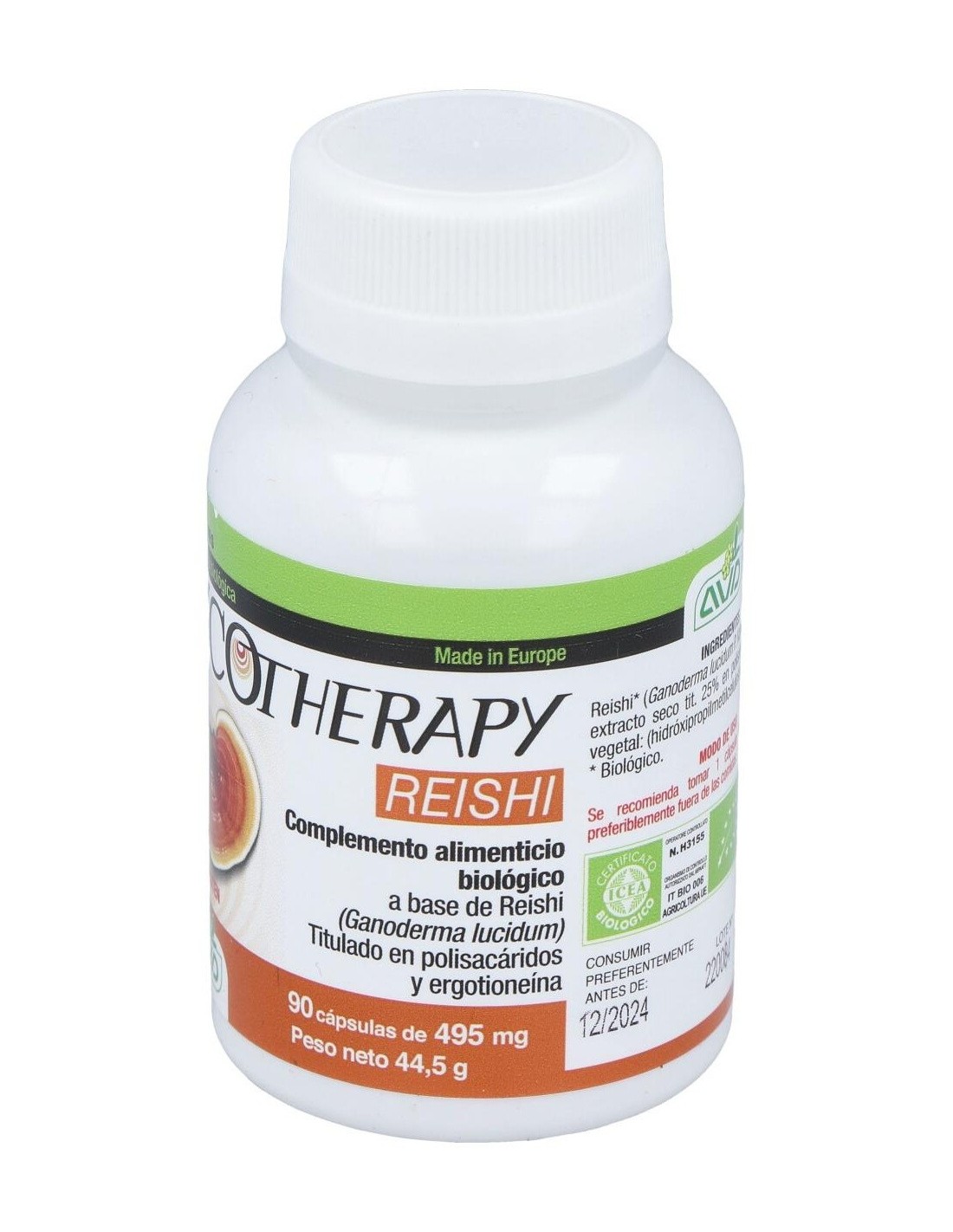 Complemento alimenticio en forma de comprimidos, elaborado con una fórmula a base de ingredientes de agricultura ecológica que ayuda a regular y fortalecer el sistema inmunitario y las defensas naturales del cuerpo. Está compuesto por extracto de Reishi, también conocido como """"Hongo de los mil años"""" u """"Hongo de la inmortalidad"""", considerado tradicionalmente como un remedio útil para restablecer el equilibrio del organismo, ayudando a mejorar la resistencia a las enfermedades.