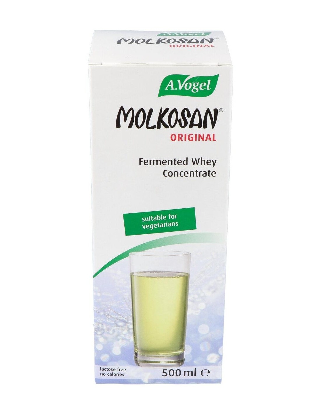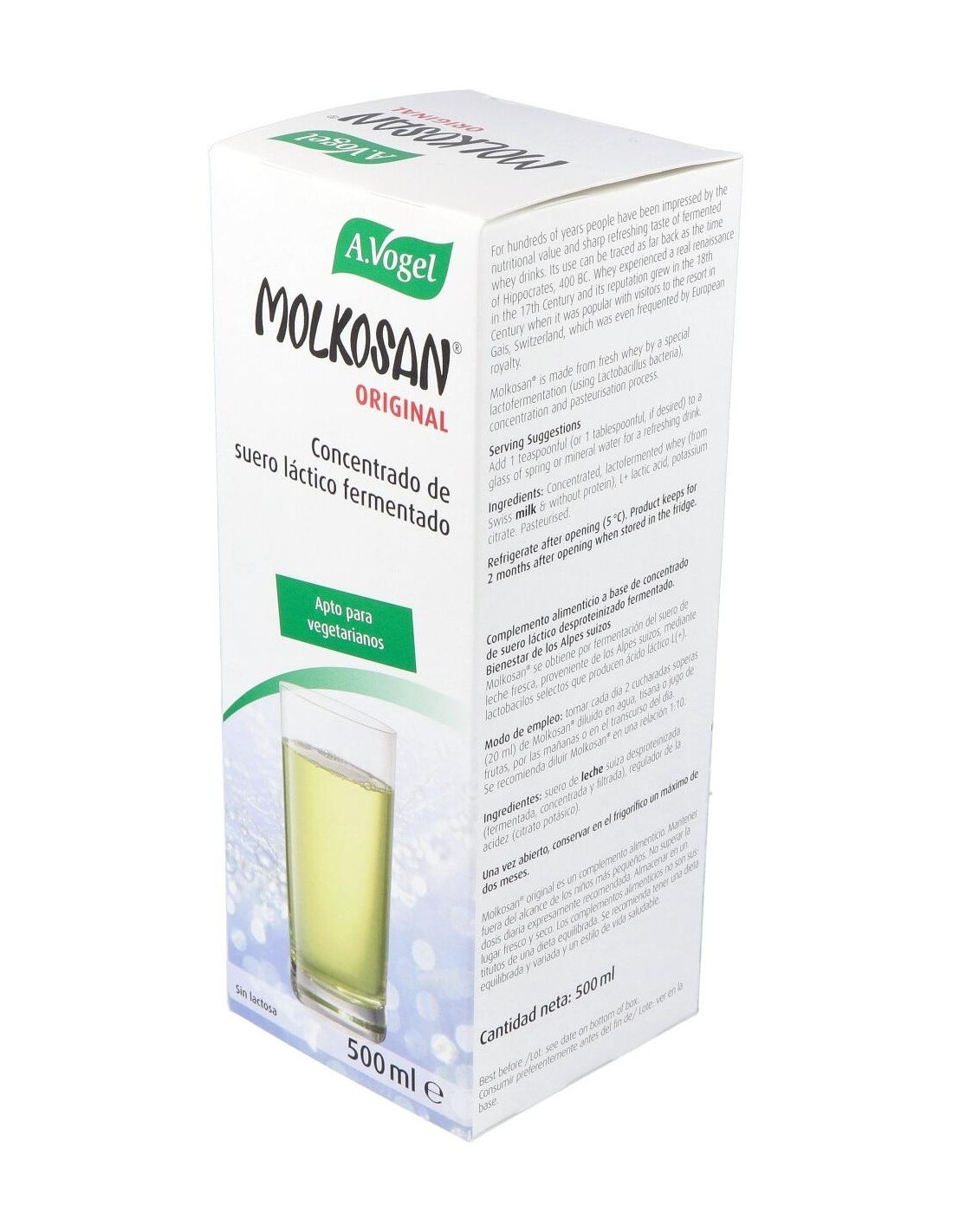 Complemento alimenticio a base de concentrado de suero la´ctico desproteinizado fermentado. Molkosan® se obtiene por fermentacio´n del suero de leche fresca, proveniente de los Alpes suizos, mediante Lactobacillus selectos que producen a´cido la´ctico L(+).
