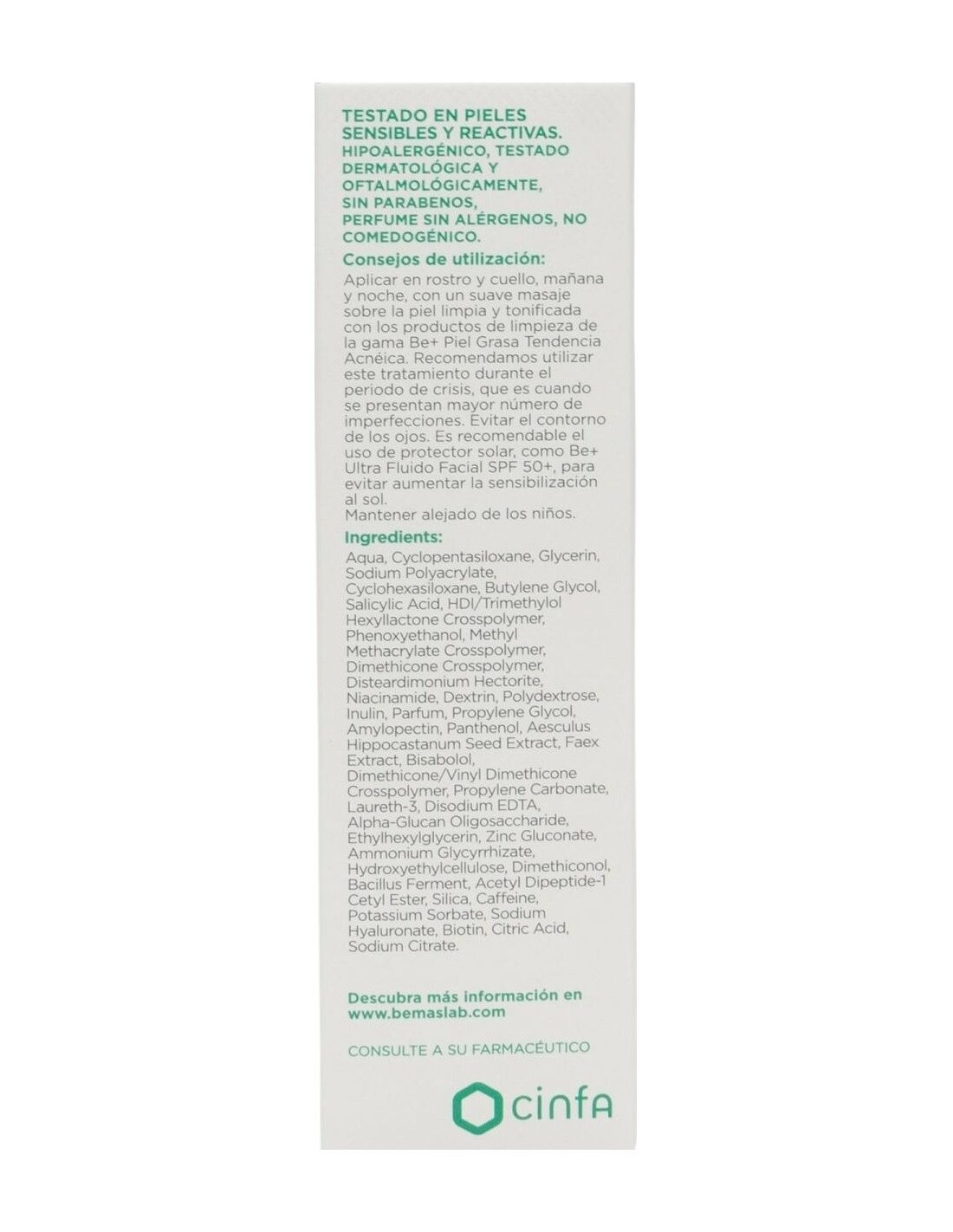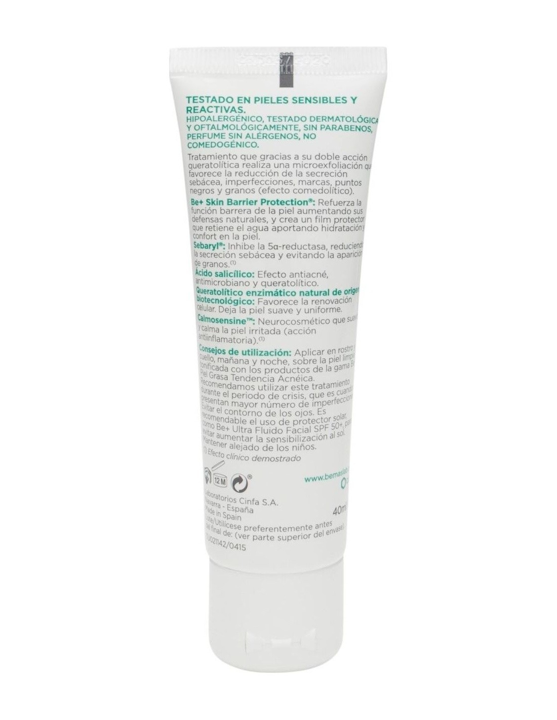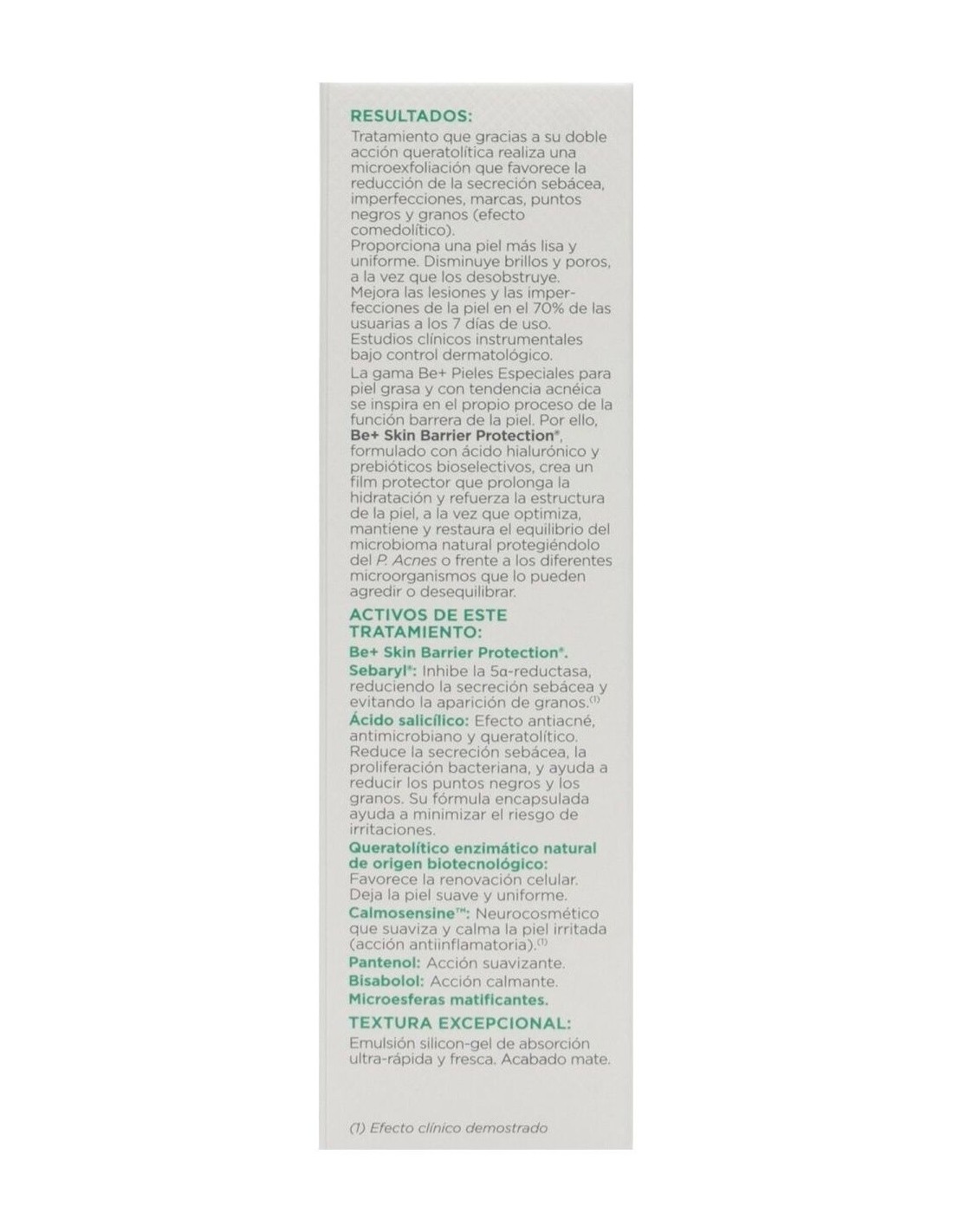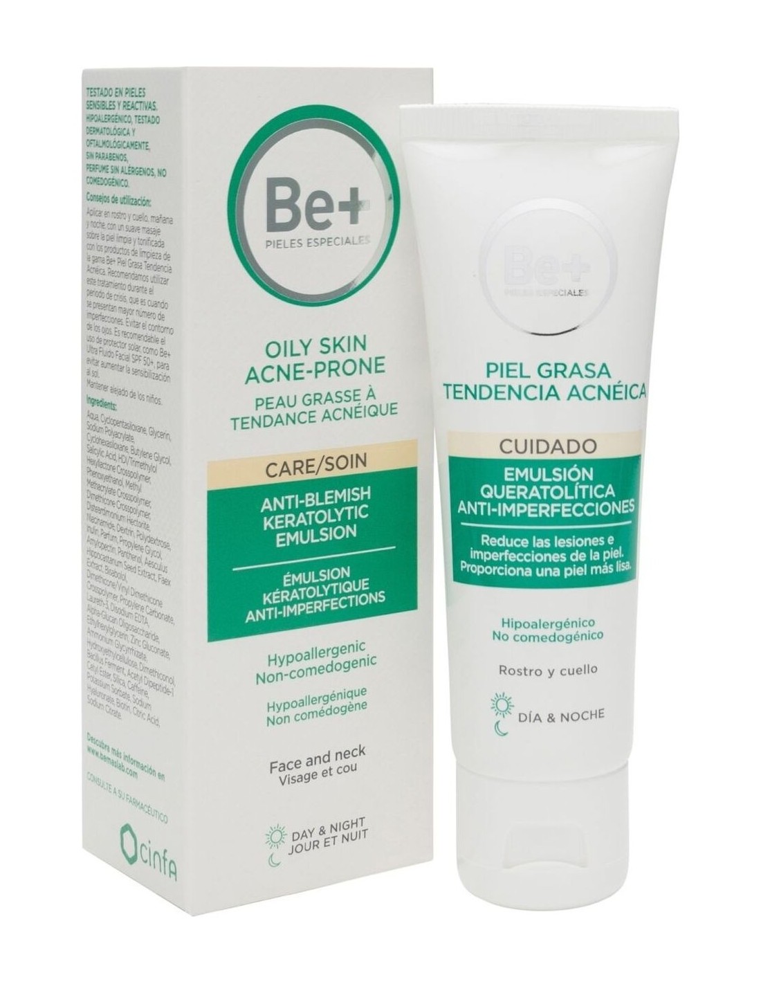 BE+Be+ | Be+ emulsión queratolítica anti-imperfecciones piel grasa tendencia acneica 40ml¿Sientes en tu piel un exceso de sebo? ¿Aparecen granitos que te gustaría eliminar? ¿Te molestan los puntos negros? Si tu piel es grasa con tendencia acneica, Be+ tiene la solución para ti.Be+ emulsión queratolítica anti-imperfecciones piel grasa tendencia acneica ayuda a reducir la secreción de sebo, las lesiones inflamatorias y los comedones, a la vez que hidrata y calma la piel.