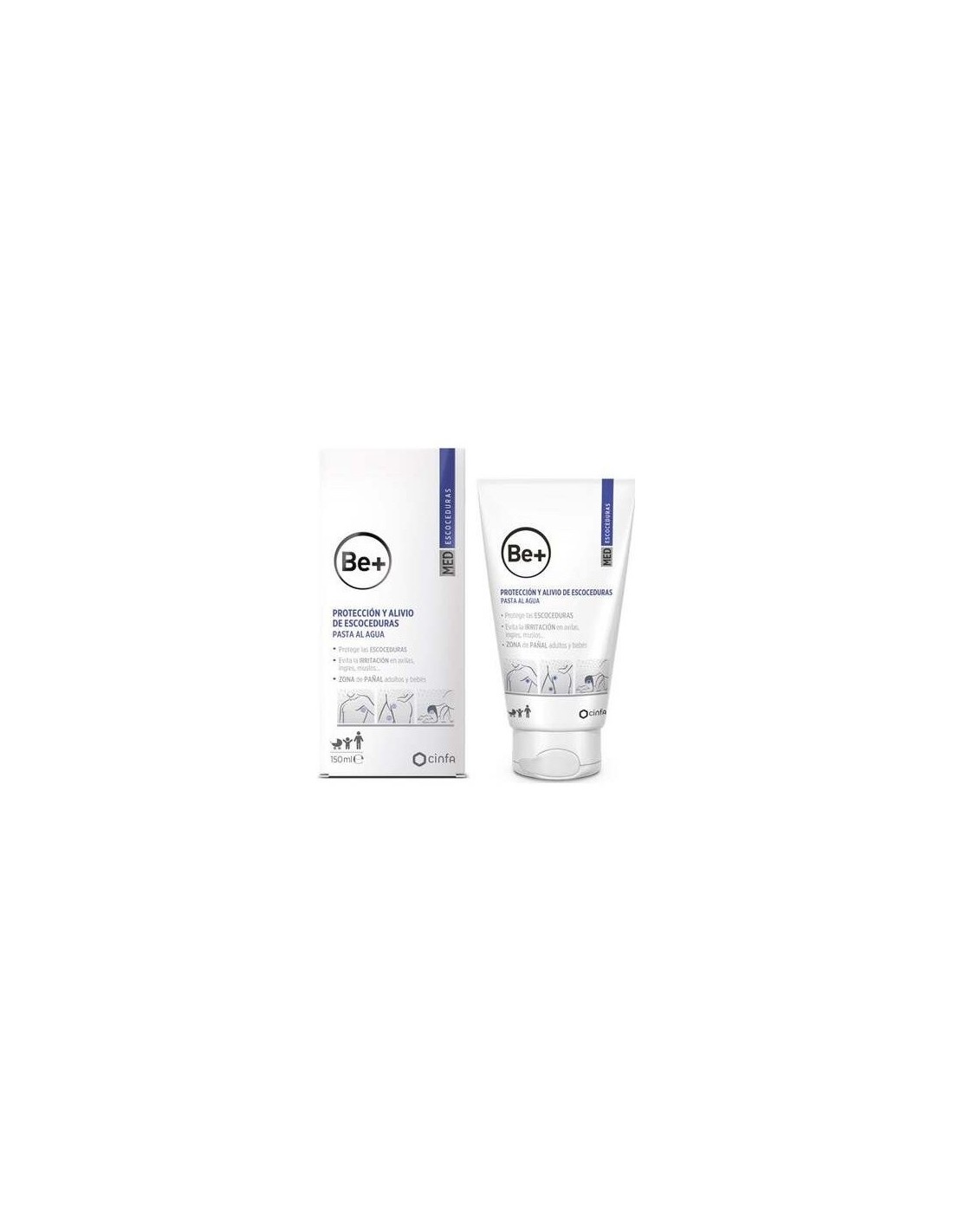 Med Escoceduras de Be+ es un producto para el cuidado personal que se utiliza para proteger la piel. Es una pasta al agua que brinda protección originando un film protector no explosivo entre la dermis y las sustancias irritantes. Es adecuado para todo tipo de escoceduras e irritaciones en el muslo, las ingles y axilas. Está recomendado para el área del pañal tanto para adultos como para niños.