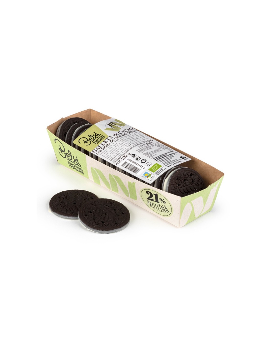 Galleta de cacao con fondo chocolate blanco proteica eco 230 gr de Belsi