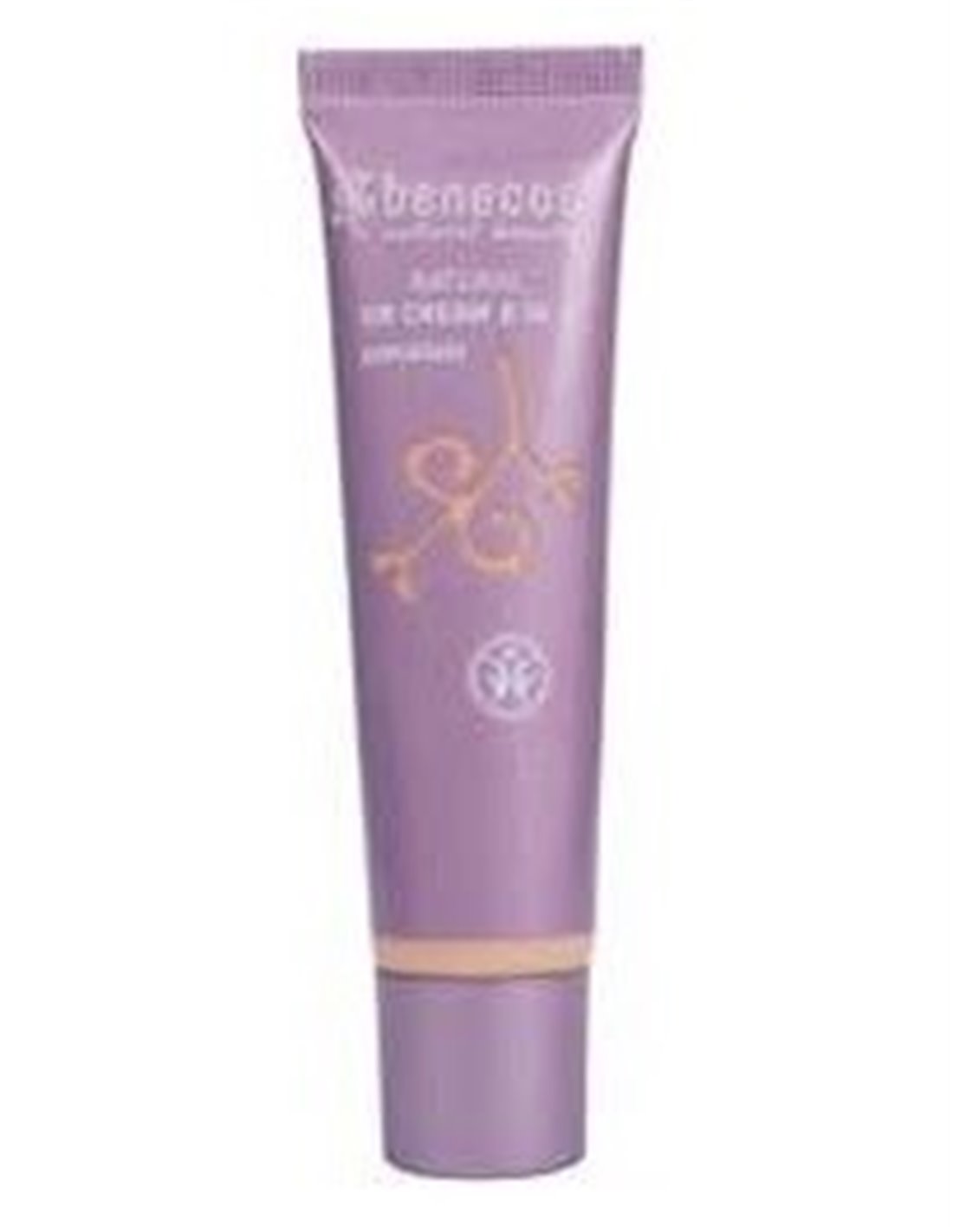 Crema de día con color de Benecos formulada a base de ingredientes naturales como la jojoba, karité y extracto de semilla de granada.
