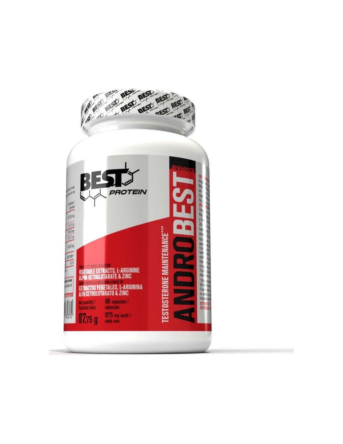 BEST PROTEINComplemento alimenticio encapsulado a base de extractos vegetales, L-arginina alpha cetoglutarato y zinc; para tomar antes de las comidas de las principales comidas. Esta fórmula puede ayudar al rendimiento deportivo y al perfil hormonal, puesto que el zinc contribuye al mantenimiento de niveles normales de testosterona.
