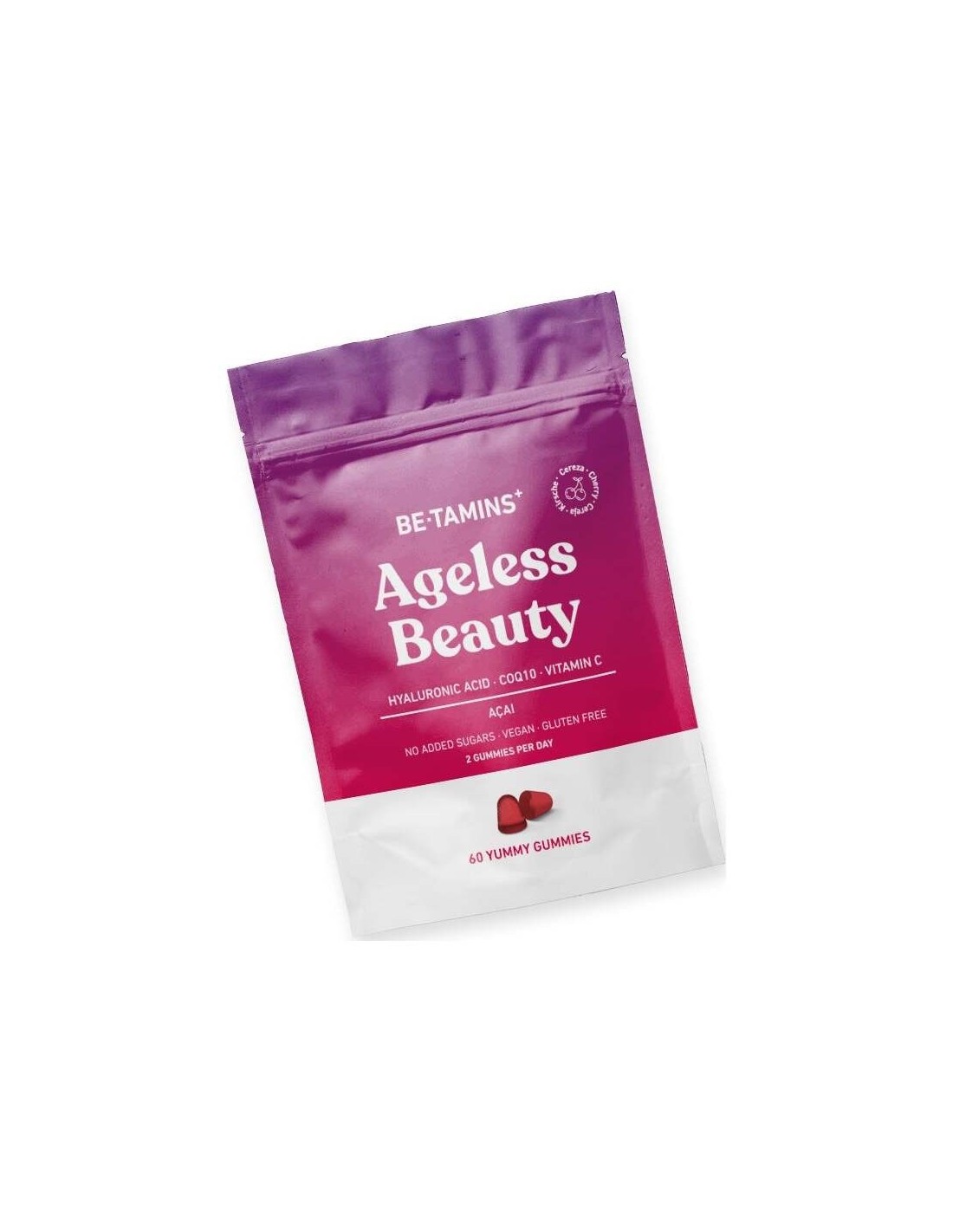 Betamins+ Ageless Beauty 60uds es un complemento alimenticio en forma de gominolas con ácido hialurónico, coenzima Q10 y vitamina C que ayuda a contrarrestar los efectos del paso del tiempo sobre la piel desde dentro.