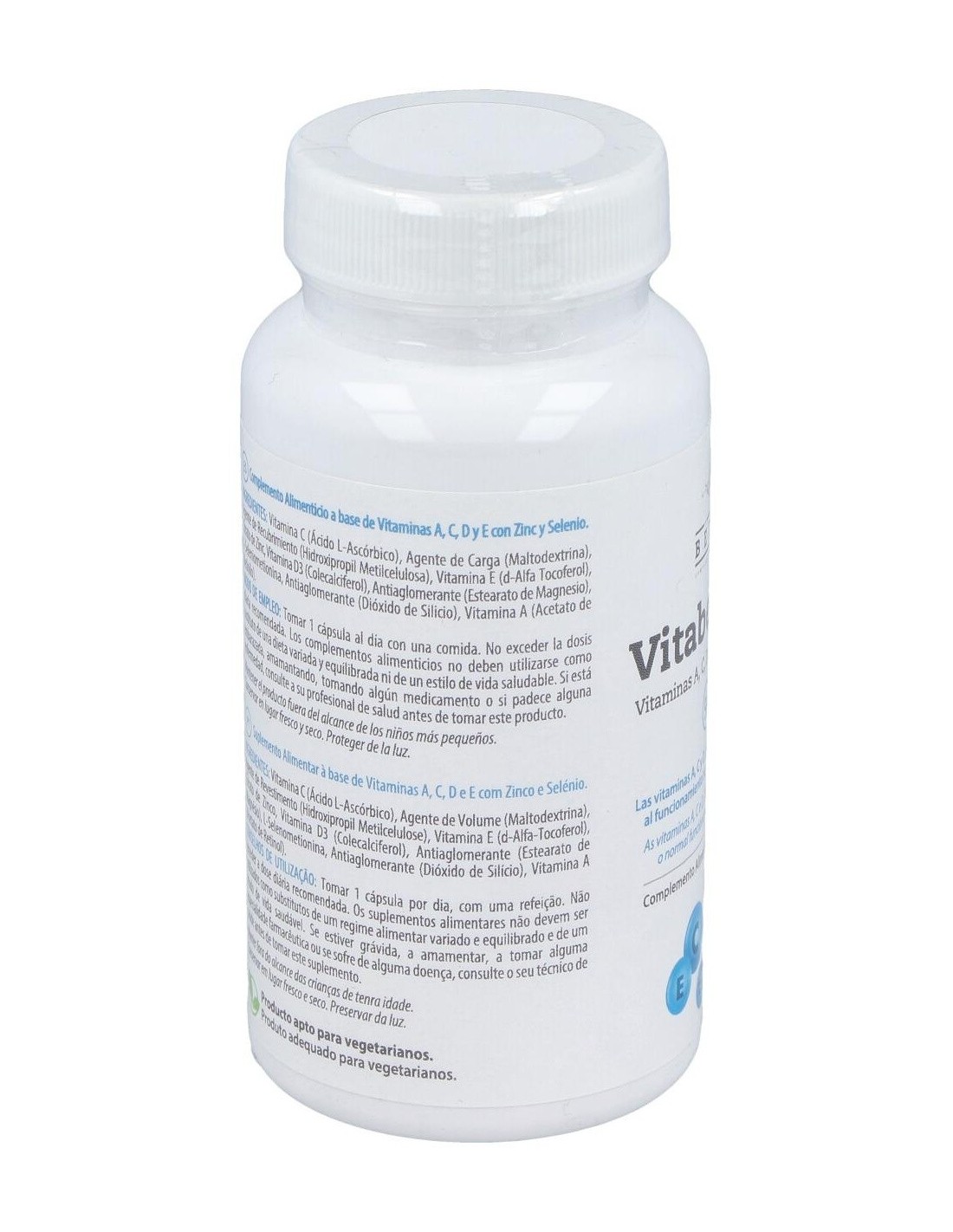 Este complemento una serie de vitaminas como la vitamina A que mantiene la integridad de las mucosas corporales impidiendo el paso de patógenos. La vitamina C que ayuda a que los leucocitos mejoren su eficiencia frente a virus y bacterias. La vitamina D que es inmunoestimulante y reduce incidencia y severidad de enfermedades respiratorias. Modula además la respuesta inflamatoria suavizando la sintomatología de los procesos infecciosos. Finalmente, la vitamina E que potencia inmunidad humoral y celular incrementando la fagocitosis.