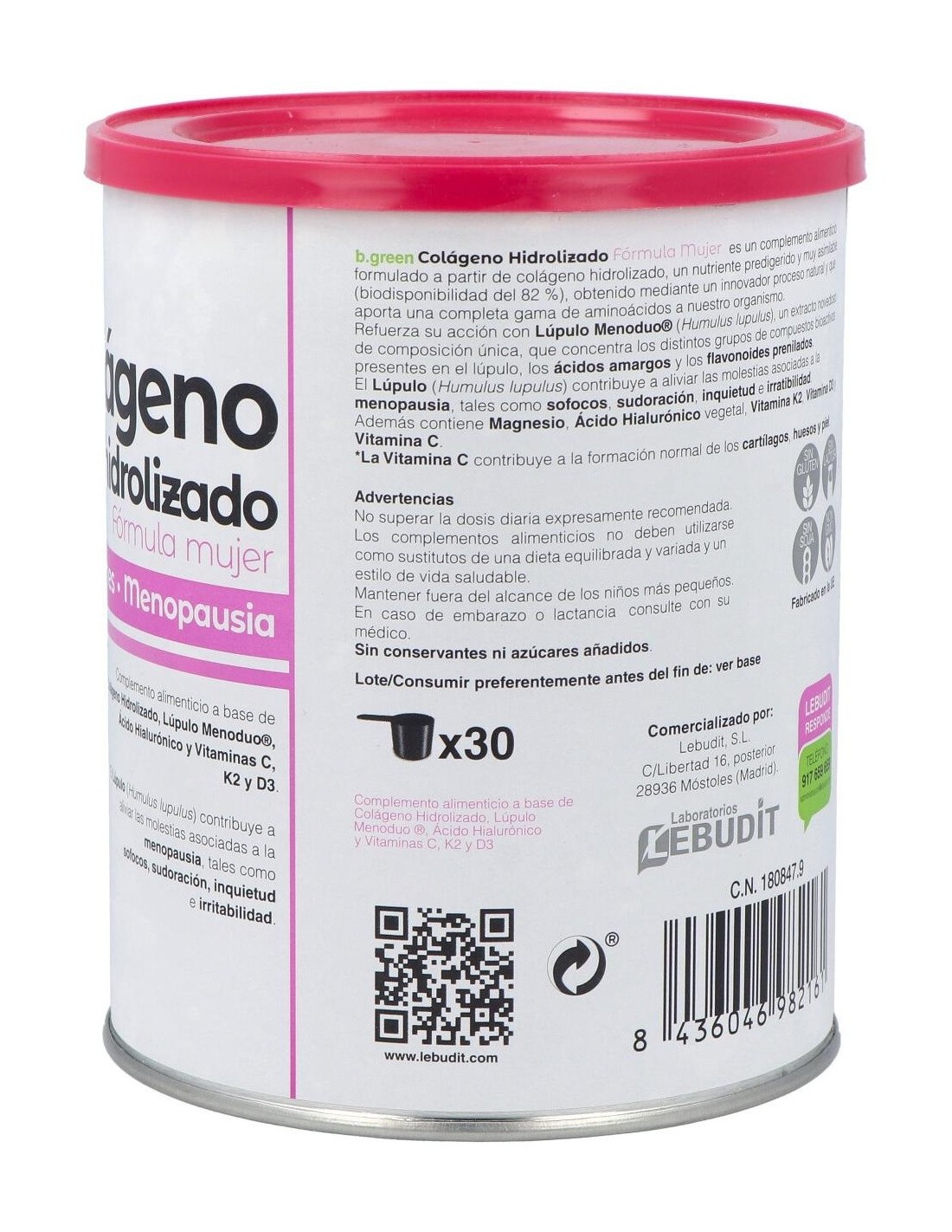 B.GREEN (LAB. LEBUDIT)COLAGENO HIDROLIZADO formula mujer 300gr. de B.GREEN