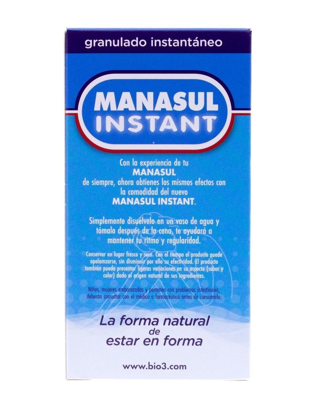 Los niños y mujeres embarazadas deberán consultar al médico antes de consumir Bio3 Manasul Instant.