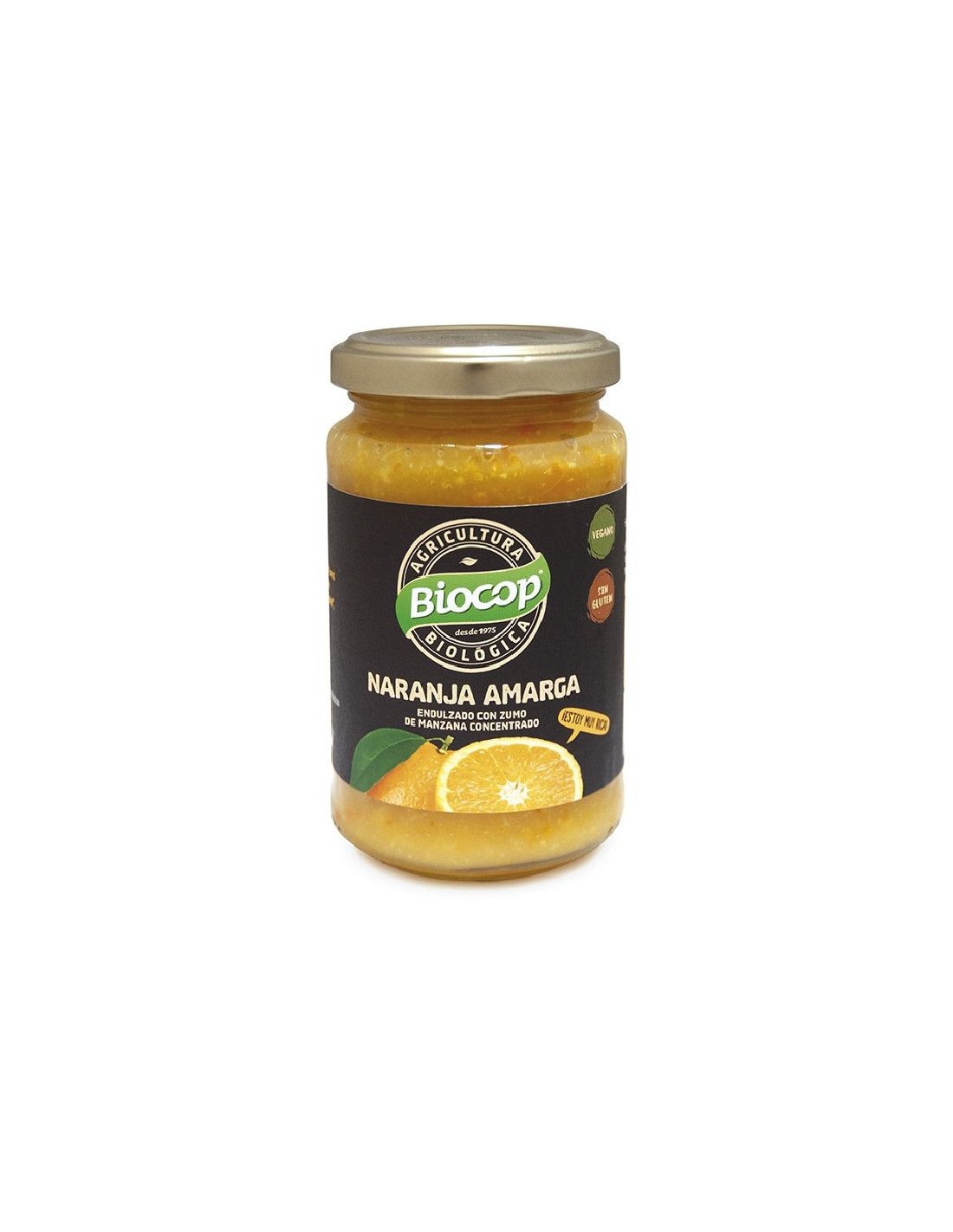 Alimento en formato de compota, creado con ingredientes naturales de la agricultura biológica. Desarrollada por Biocop para brindar una comida saludable. Es de textura espesa e incluye trozos de fruta, en este caso, naranja amarga. No contiene gluten ni azúcares añadidos y solo es endulzado empleando zumo de manzana concentrado. Su método de preparación garantiza conservar las propiedades, sabores y fragancias de sus componentes. Aporta excelentes nutrientes al cuerpo humano de una manera completamente saludable, natural y apta para veganos. Buen contenido de grasas, azúcares, proteínas y calorías, elementos que colaboran con una dieta balanceada. Diseñado especialmente para bebés o adultos mayores que no puedan morder eficazmente otro tipo de alimentos. Recomendado consumir en desayunos o meriendas de adultos y niños. Evitar su consumo si se evidencia alguna reacción alérgica a alguno de sus componentes.