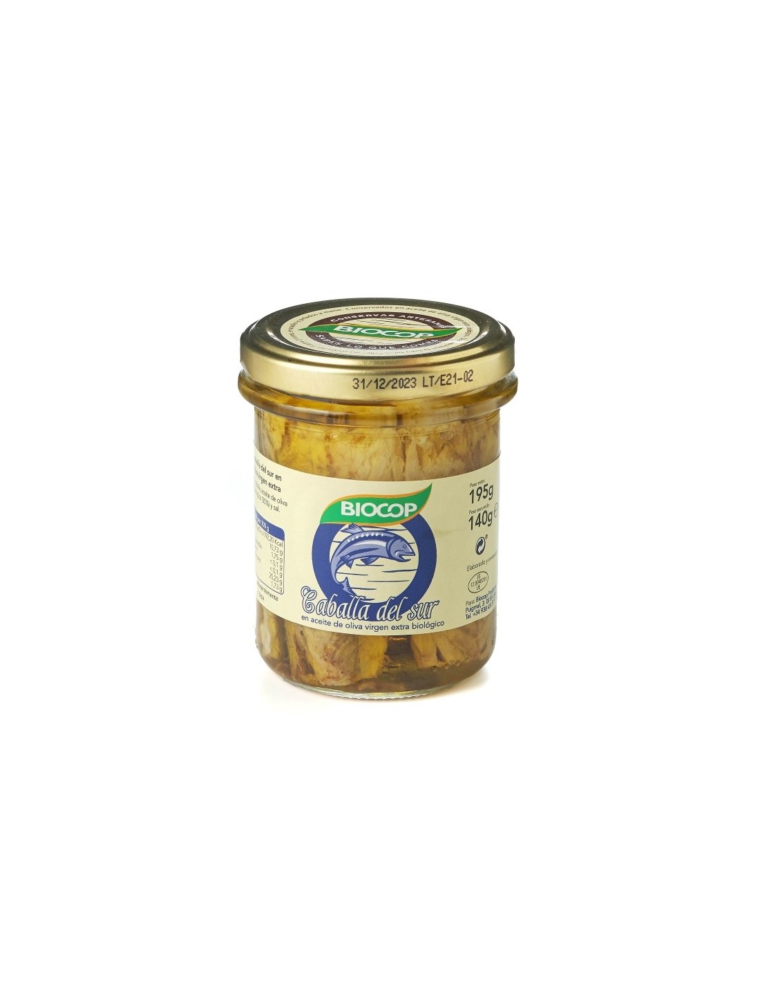 Pensando en productos alimenticios de origen animal como el pescado. Biocop diseñó el filete de caballa en aceite de oliva virgen extra biológico. Este es un alimento de sabor y consistencia agradable. Cuenta con altos niveles nutricionales que al ser consumidos constantemente. Son fuente de proteínas y proporcionan vitaminas A, B, E, D y minerales como el potasio, yodo fósforo, magnesio y hierro. La caballa se caracteriza por ser un pescado azul de agua salada, que contiene ácidos grasos como lo es el Omega-3 que ayuda a proteger el sistema cardiovascular y minimiza la presencia de los triglicéridos en la sangre. También fortalece el cerebro y mejora el sistema inmunológico. Presentación de 195 g. Producto natural que proviene de la pesca extractiva. Contiene sal marina. Una vez abierto consérvese refrigerado.