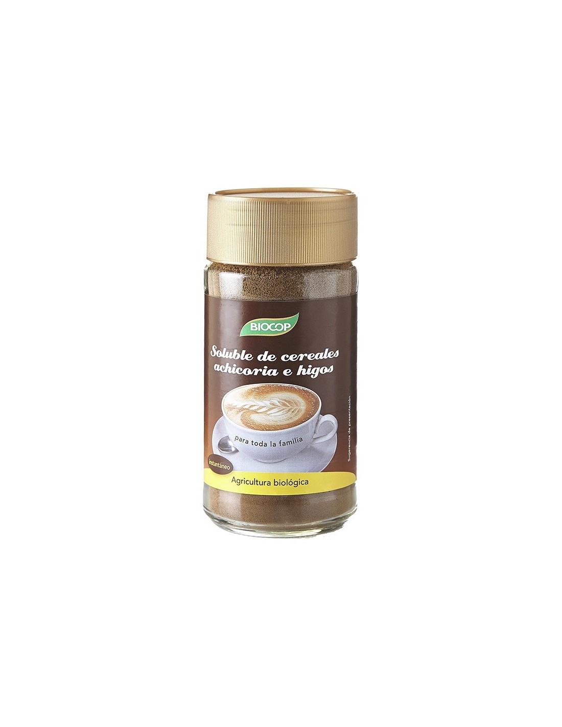 Bebida instantánea de cereales solubles con una mezcla aromática de cereales, achicoria e higos tostados. Constituye una buena alternativa para quienes desean disminuir su consumo de café. Artemis elabora este producto tostando una combinación de cereales y añadiendo achicoria, que le da un sabor amargo. Contiene higos secos que le dan un toque dulce. Biocop cereales solubles con achicoria tiene un alto contenido en fibra y no contiene cafeína. Sus propiedades beneficiosas incluyen una mejora del apetito, disminución del colesterol, alivio de problemas digestivos y propiedades antiinflamatorias. La elaboración con higos hace que sea un producto rico en minerales y oligoelementos como potasio, hierro o cobre. Fuente de vitaminas del grupo B. Aporte de compuestos fenólicos antioxidantes como flavonoides y carotenoides. Proporciona un alto aporte energético procedente de los hidratos de carbono.