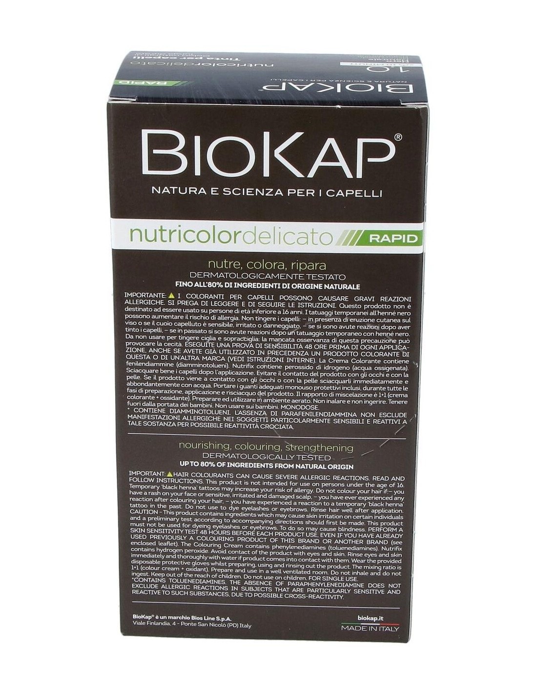 Con una velocidad de obturación de solo 10 minutos debido a su formulación que reduce el tiempo de aplicación del tinte. Se basa en ingredientes vegetales y una alta tolerabilidad de la piel. Nutre y repara el cabello mientras colorea y cubre perfectamente el cabello blanco. Con el complejo TRICOREPAIR a base de proteínas de arroz, derivados de Salice y ácidos lipofílicos de frutas. Enriquecido con aceite de Argán orgánico, nutre el cabello y lo hace más suave y brillante. Sin amoniaco, resorcinol, parabenos, fragancia ni parafenilendiamina. Sin níquel y dermatológicamente probado.