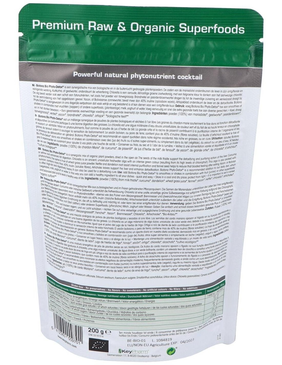 Polvo (100%) De Cardo Mariano*, Cúrcuma*, Chlorella*, Diente De León*, Jugo De Hierba De Trigo*, Hinojo*, Yacón*, Alcachofa*. *Cultivo Ecológico (Silybum Marianum, Curcuma Longa, Chlorella Pyrenoidosa, Ta- Raxacum Officinale, Triticum Aestivum, Foeniculum Vulgare, Smallanthus Sonchifolius, Cynara Scolymus)