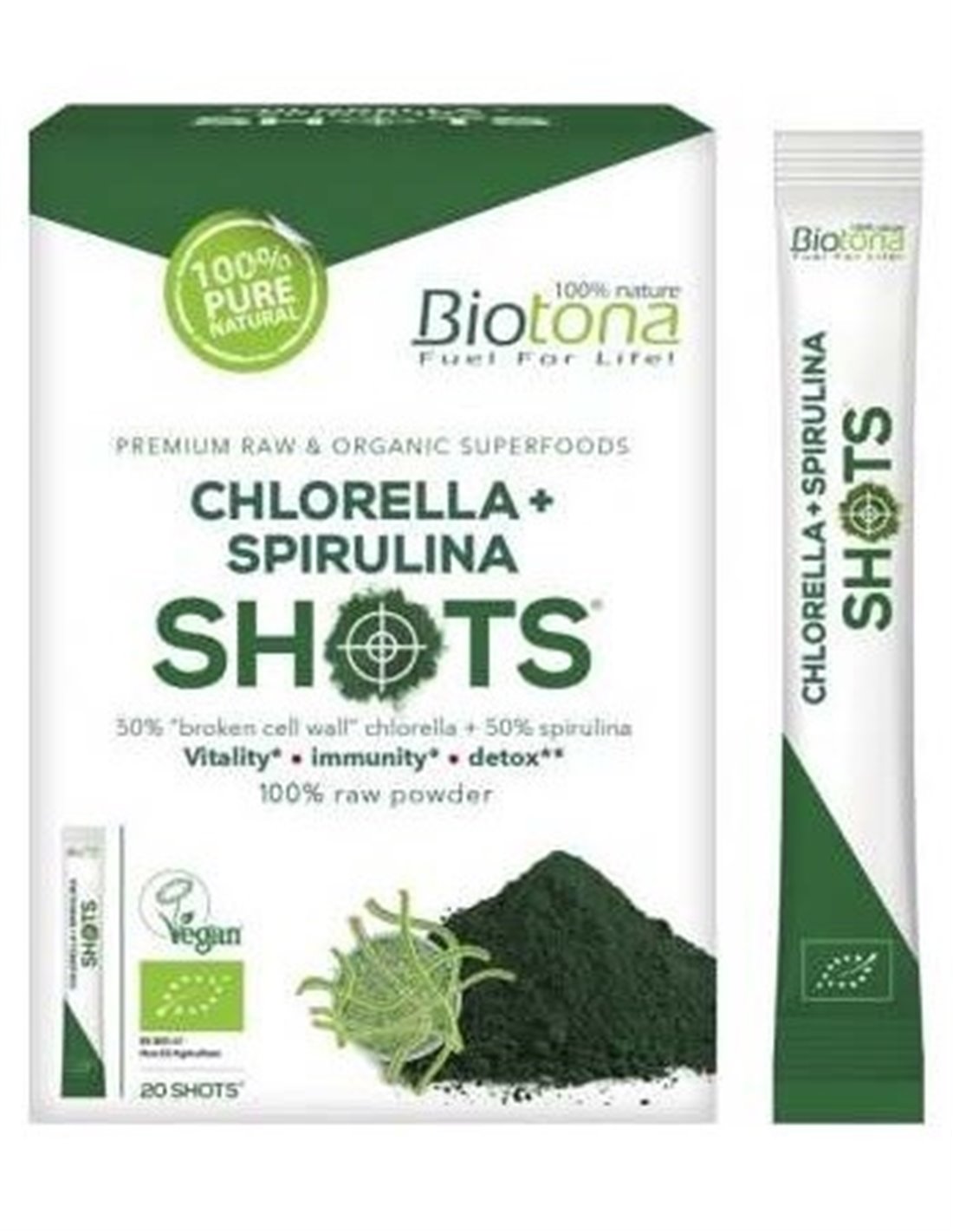 Chlorella+Espirulina Raw 20Shots. Bio Sg Vegan de Biotona