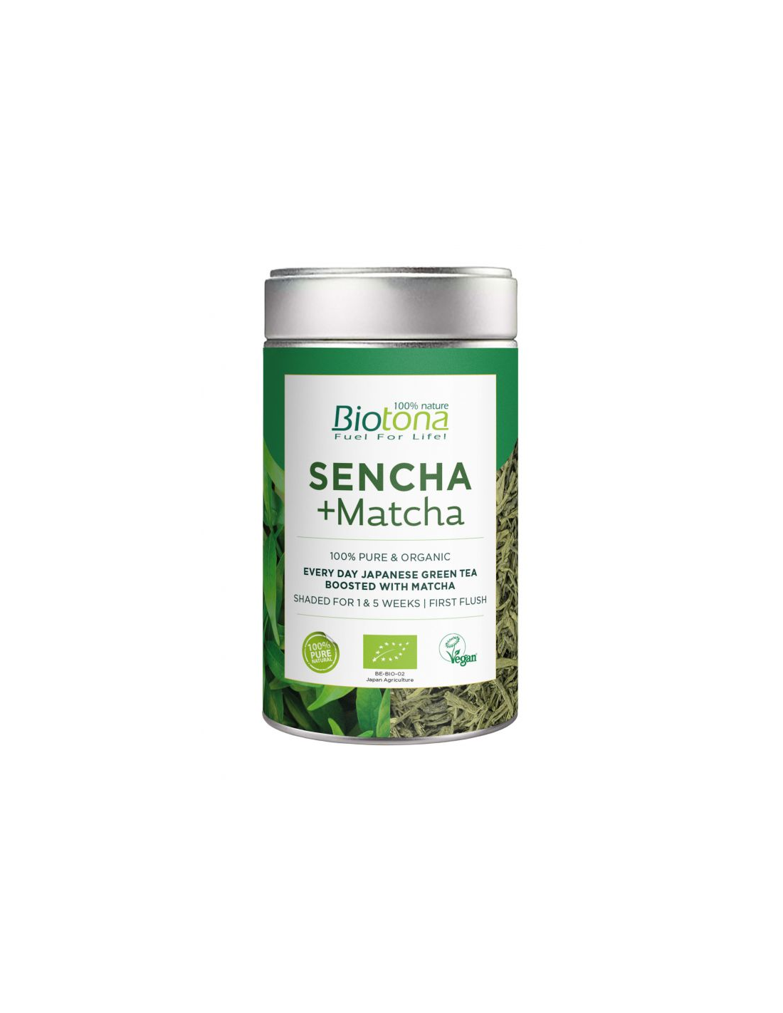 BIOTONAMezcla de hojas sueltas de té verde Sencha y polvo de Matcha que combina perfectamente los sabores complementarios de estos dos tés japoneses. Producto vegano.