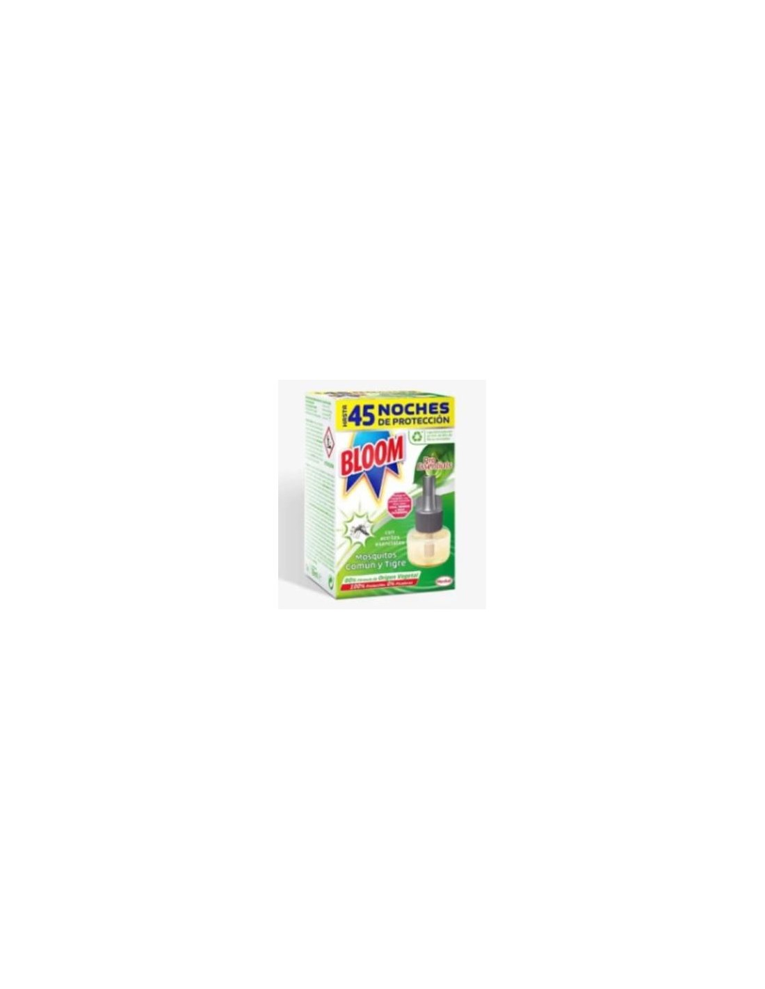 BLOOM DERMBloom Recambio Eléctrico Líquido Pro Essentials es la solución perfecta contra los mosquitos común y tigre. Protección eficaz y más sostenible gracias al diseño de su caja con un mínimo de 90% de fibras recicladas y su fórmula 80% de origen vegetal. Al activarse el modo Max, se consigue la máxima protección, como si hubiese dos aparatos conectados. Cada recambio ofrece hasta 45 noches de protección.