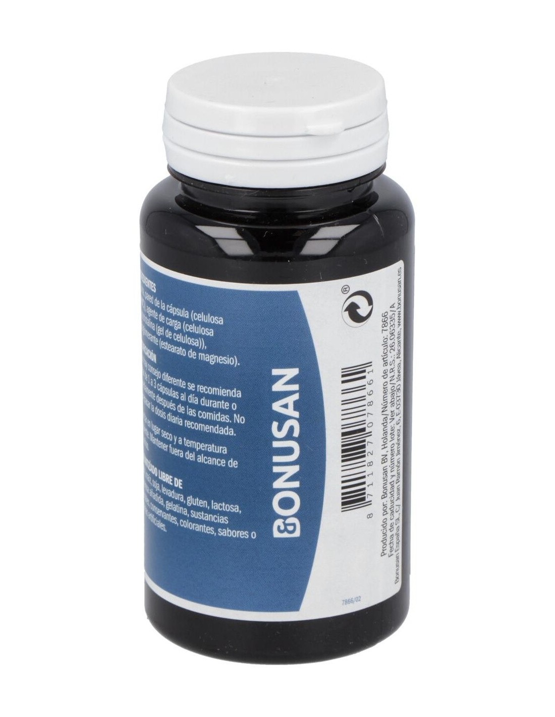 Pared de la cápsula (celulosa (HPMC)), agente de carga (celulosa microcristalina (gel de celulosa)), antiaglomerante (estearato de magnesio).