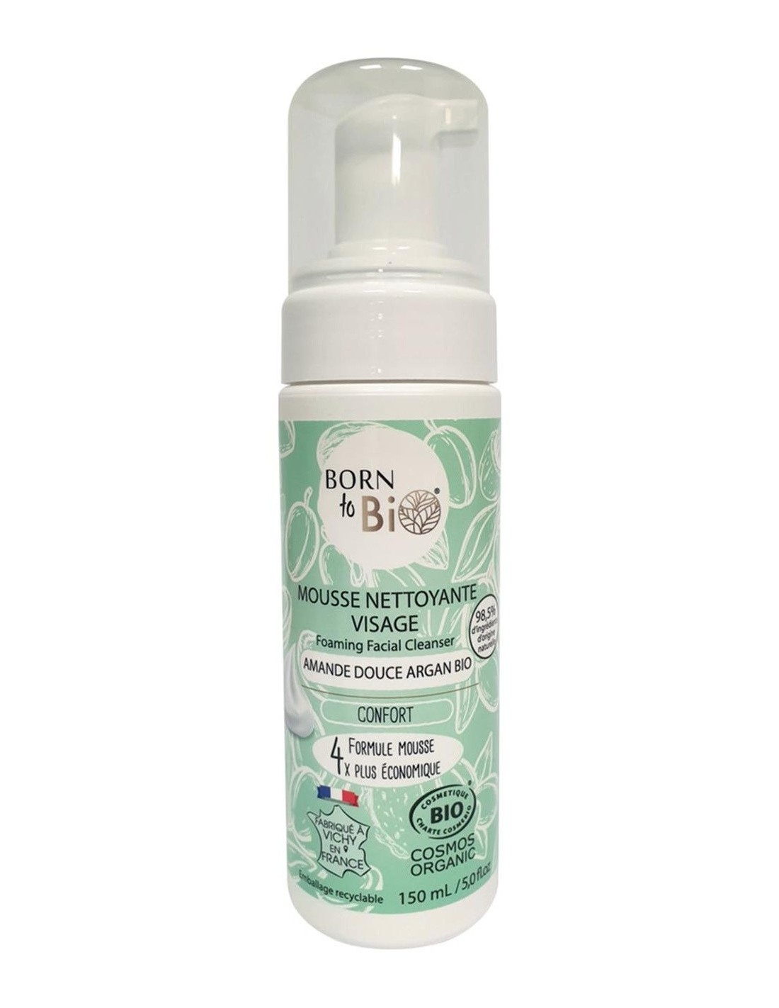 BORN TO BIOSu textura ligera y sin jabón elimina eficazmente las impurezas, preservando la barrera cutánea gracias a su fórmula rica en ingredientes nutritivos. La almendra dulce ecológica y el extracto de argán ecológico son los principales activos de esta espuma limpiadora que deja la piel fresca y suave. Adecuada para pieles normales a secas, esta fórmula 'Confort' se puede usar a diario para limpiar suavemente el rostro y revelar su brillo natural. Cosmos Organic.