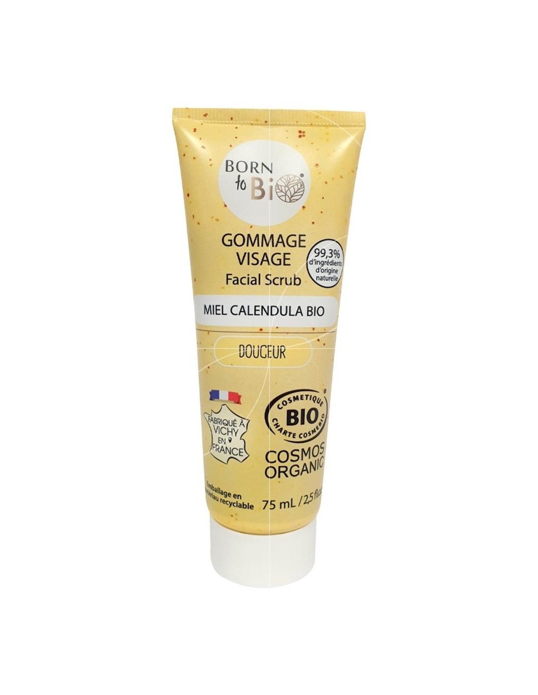 BORN TO BIOEste exfoliante facial especialmente diseñado para pieles sensibles permitirá eliminar suavemente las impurezas, limpiar en profundidad la epidermis y afinar la textura de la piel. Además de estos beneficios exfoliantes, este exfoliante facial también aporta un brillo natural al cutis. Elaborado a partir de exfoliantes naturales, biodegradables y orgánicos certificados, es apto tanto para hombres como para mujeres. Cosmos Organic.