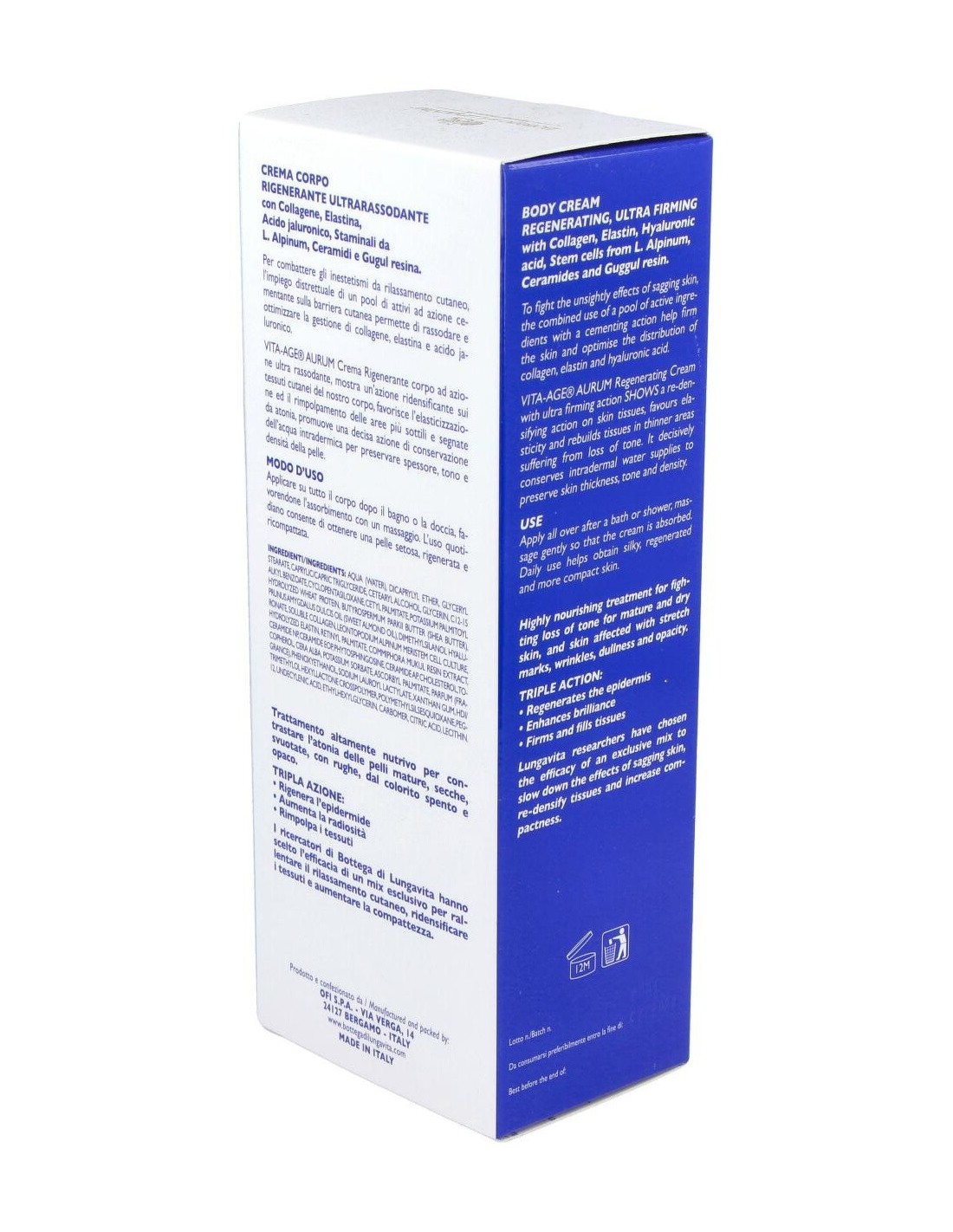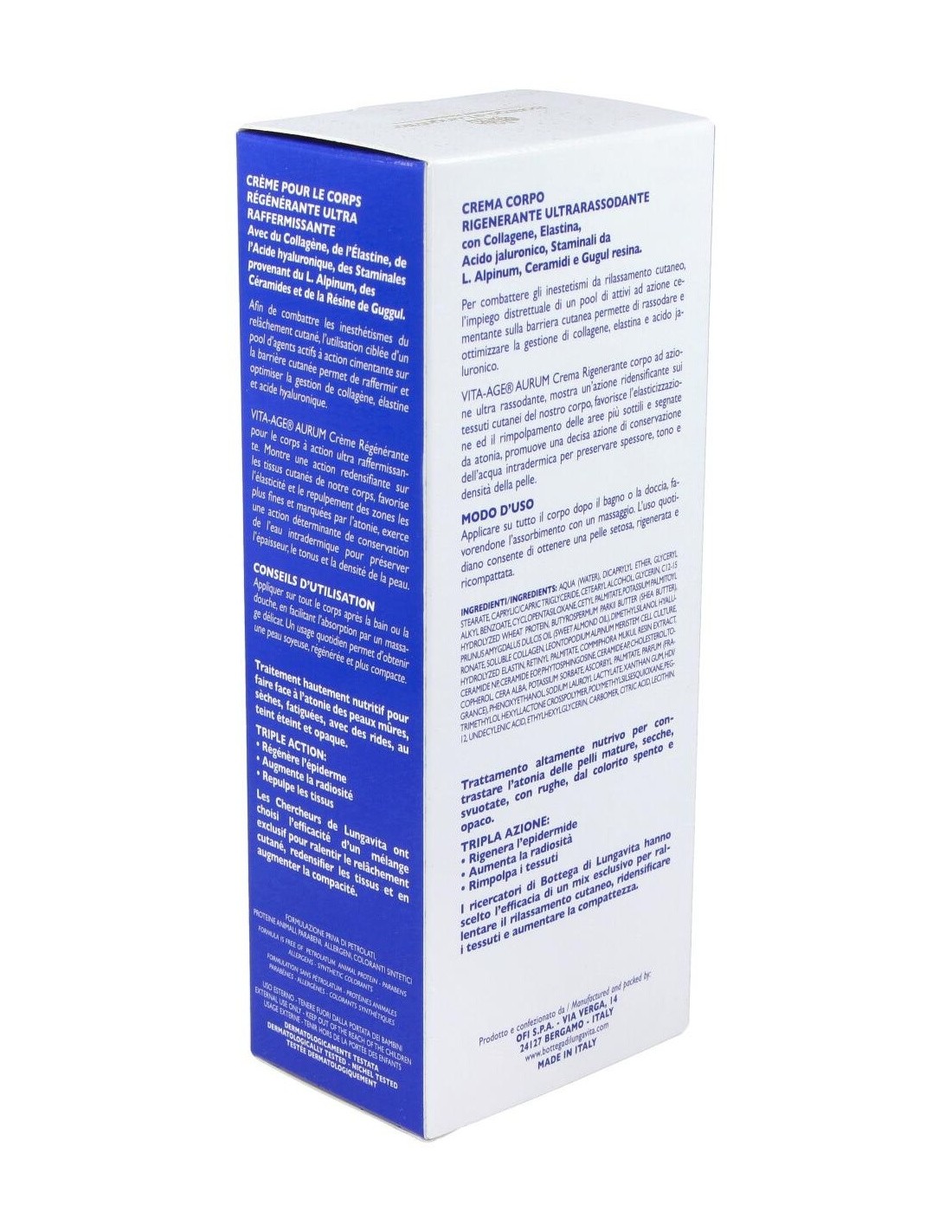 BOTTEGA DI LUNGAVITACon una acción ultra-reafirmante, potenciado por el uso de ingredientes celulares activos con extraordinarias propiedades biológicas. Esta crema ralentiza la relajación de la piel, redensifica los tejidos y aumenta la compacidad de la piel en el cuerpo.