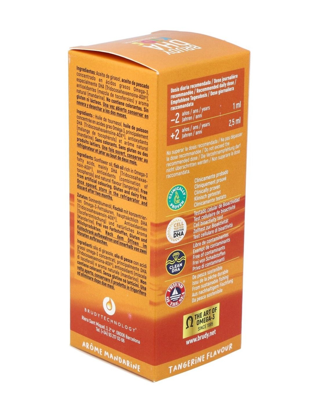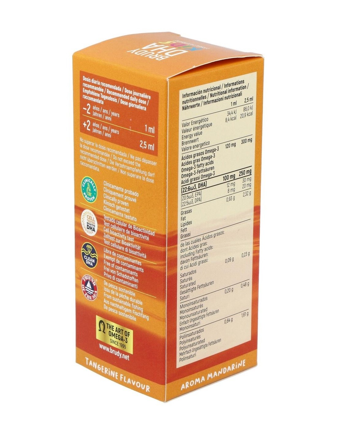 Aceite especialmente formulado para ayudar a satisfacer las necesidades infantiles de DHA, con agradable sabor a mandarina. Clínicamente probado en infancia.