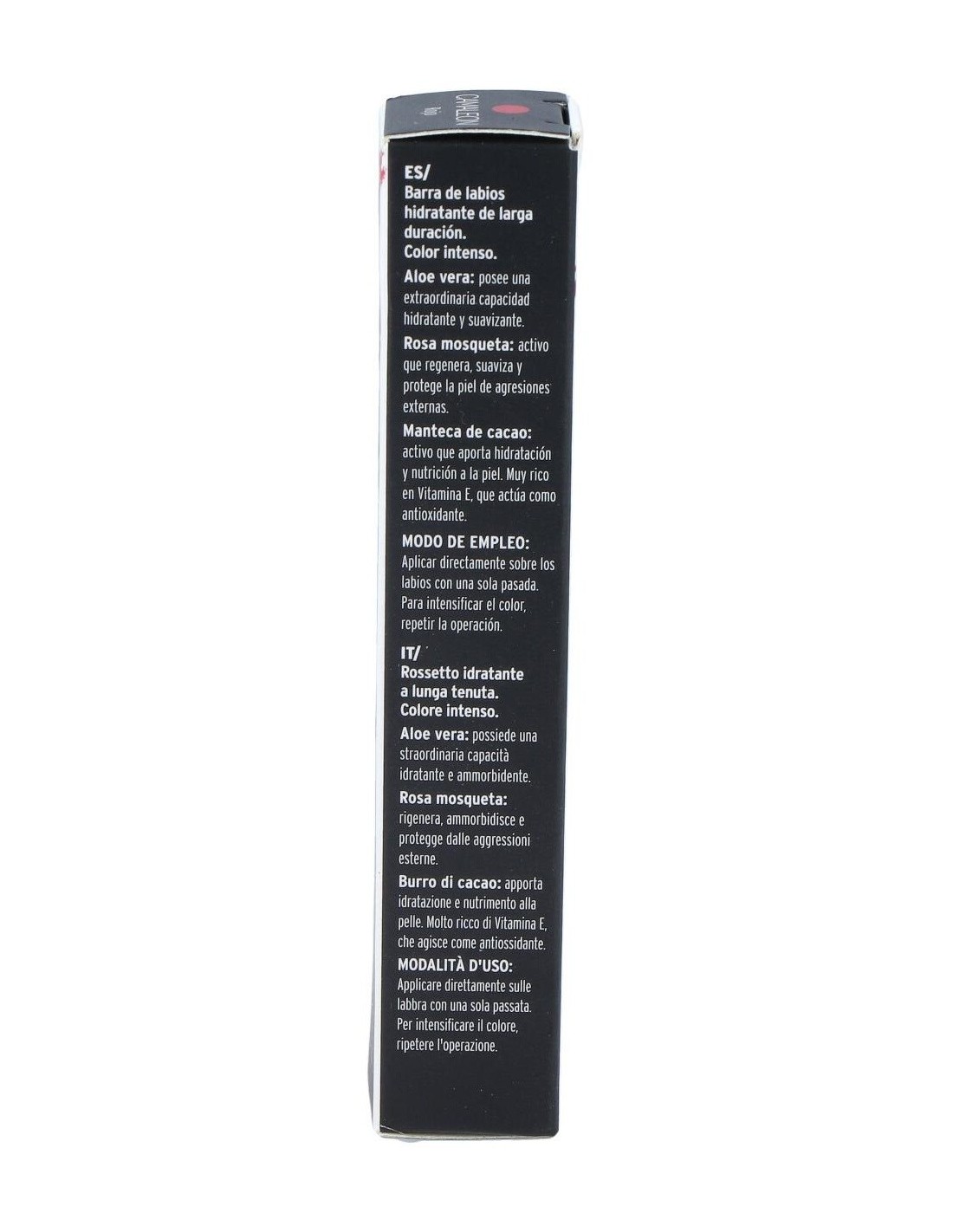 De esta manera, tus labios se verán hidratados con una capa de color intenso y nutritivo. El acabado ofrece un tono rojizo variable en función de la hidratación natural de los labios de cada persona.